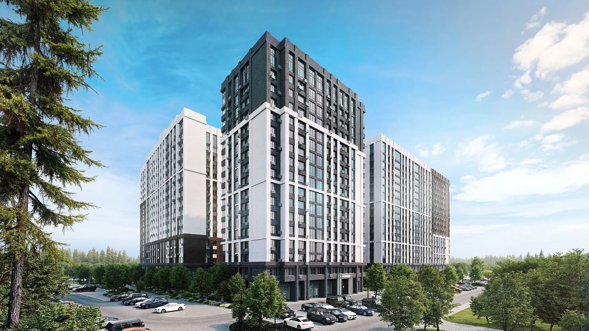 Комплекс займёт территорию площадью 34,4 га, где планируется построить 21 монолитно‑кирпичный дом переменной этажности — от 13 до 17 этажей. Строительство ведётся поэтапно: в первой очереди возводятся три корпуса на 656, 448 и 176 квартир.