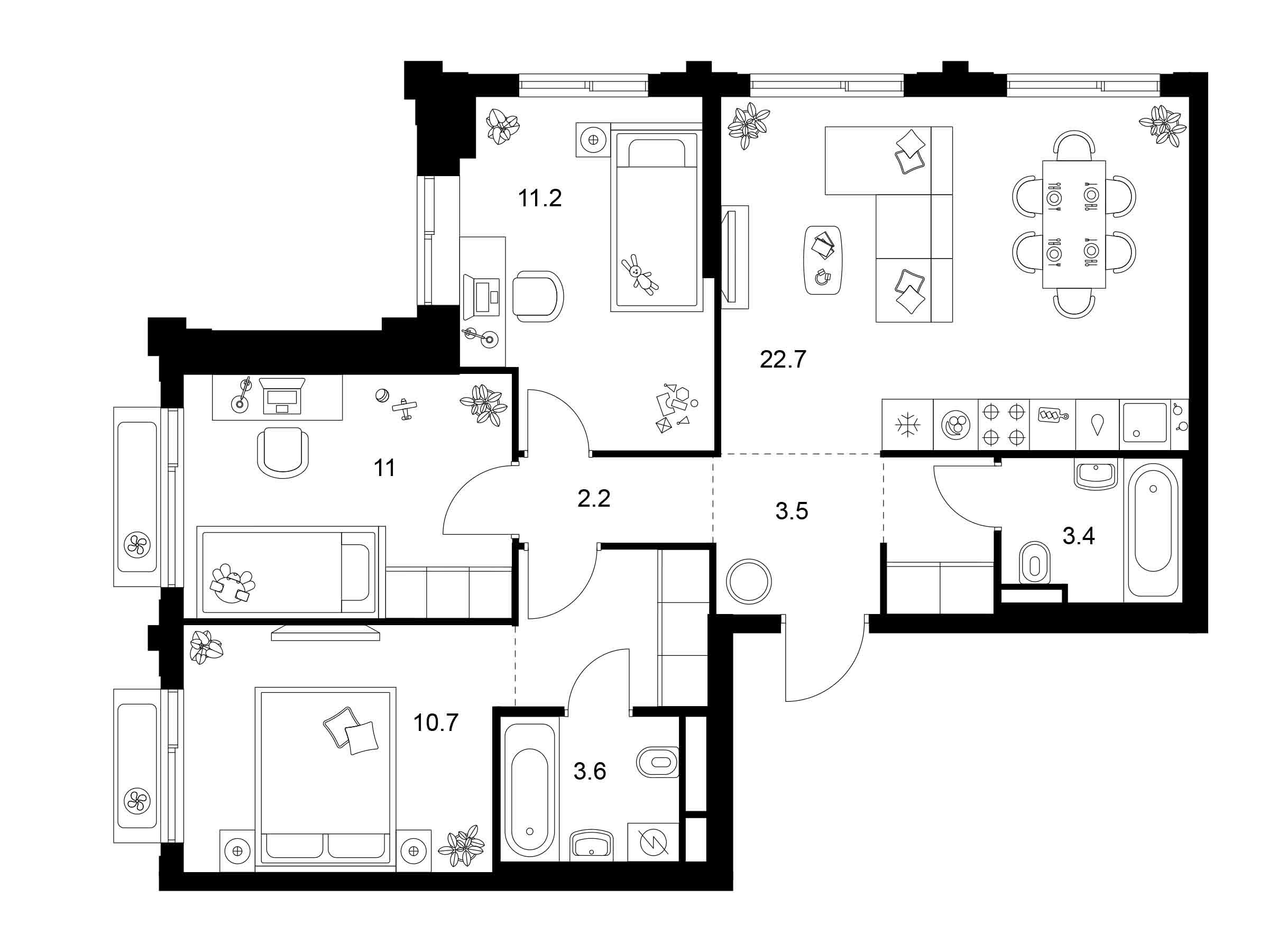 Архитектурную концепцию проекта разработало российское бюро M.A.M. Искусная работа с формой зданий позволила проекту воплотить в себе современную элегантность и функциональность. В проекте представлено множество планировок семейного формата: с мастер-спальнями и комнатами, разнесёнными по разным сторонам квартиры, чтобы у каждого было своё личное пространство. Большие семьи также оценят удобные планировки с постирочными и гардеробными. А также уникальные форматы квартир с террасами, балконами и лоджиями.