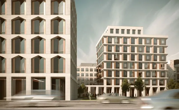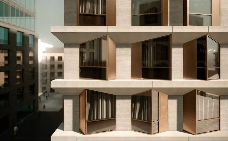 Архитектурная концепция разработана бюро «Цимайло Ляшенко и партнёры». Фасады отделаны натуральным юрским мрамором из Хорватии, а панорамное остекление с алюминиевым профилем придаёт комплексу современный элегантный вид. Асимметричные окна, выходящие во внутренний двор, формируют уникальный архитектурный облик. Здания органично вписаны в дух острова Балчуг и согласованы с окружающей исторической застройкой.