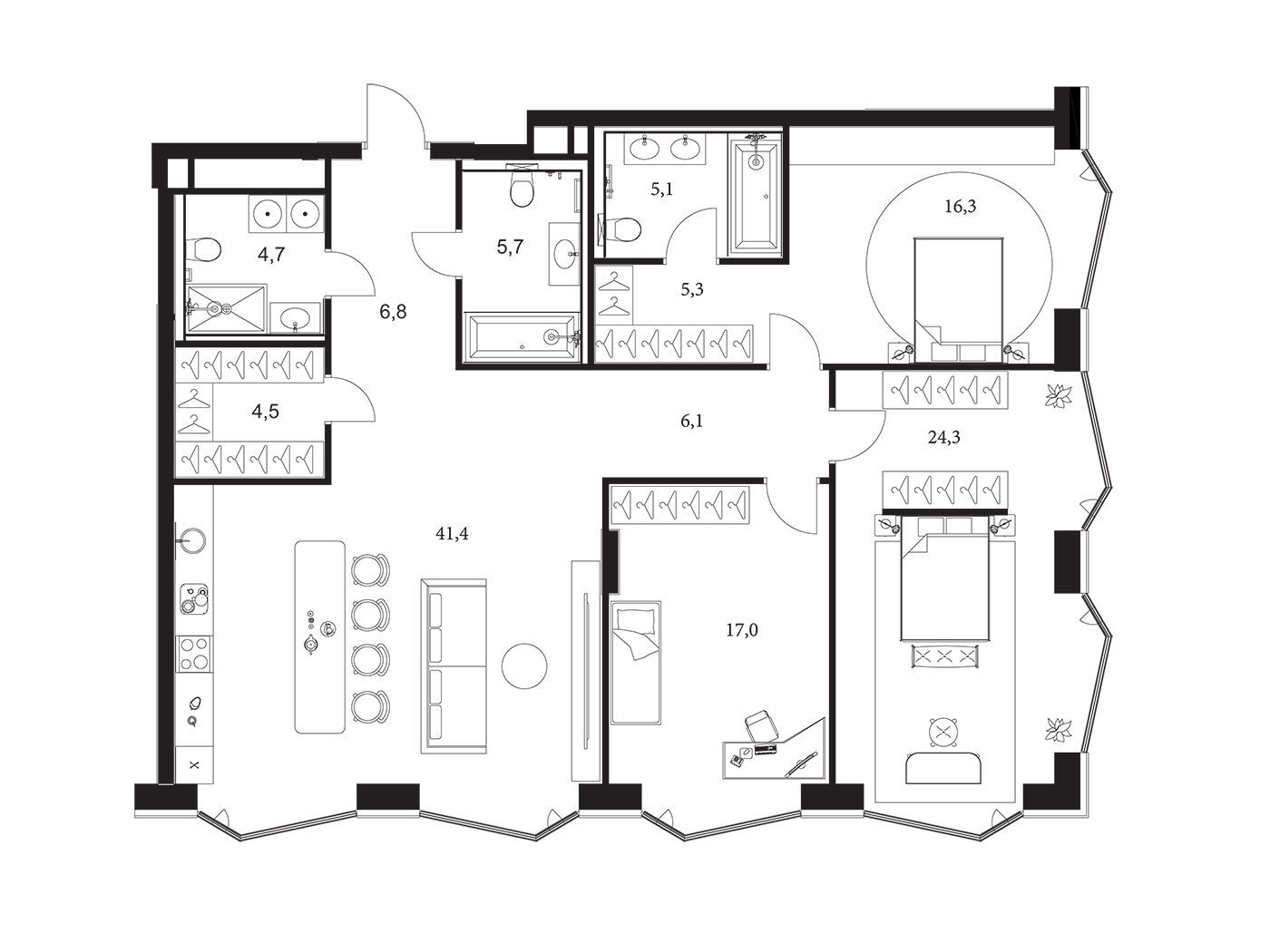Комплекс состоит из пяти монолитных клубных особняков переменной этажности — от 5 до 9 этажей. Всего в проекте 181 резиденция с предчистовой отделкой и 9 пентхаусов с террасами. Площадь лотов варьируется от 58 до 438 м², высота потолков — от 3,05 до 3,7 м.