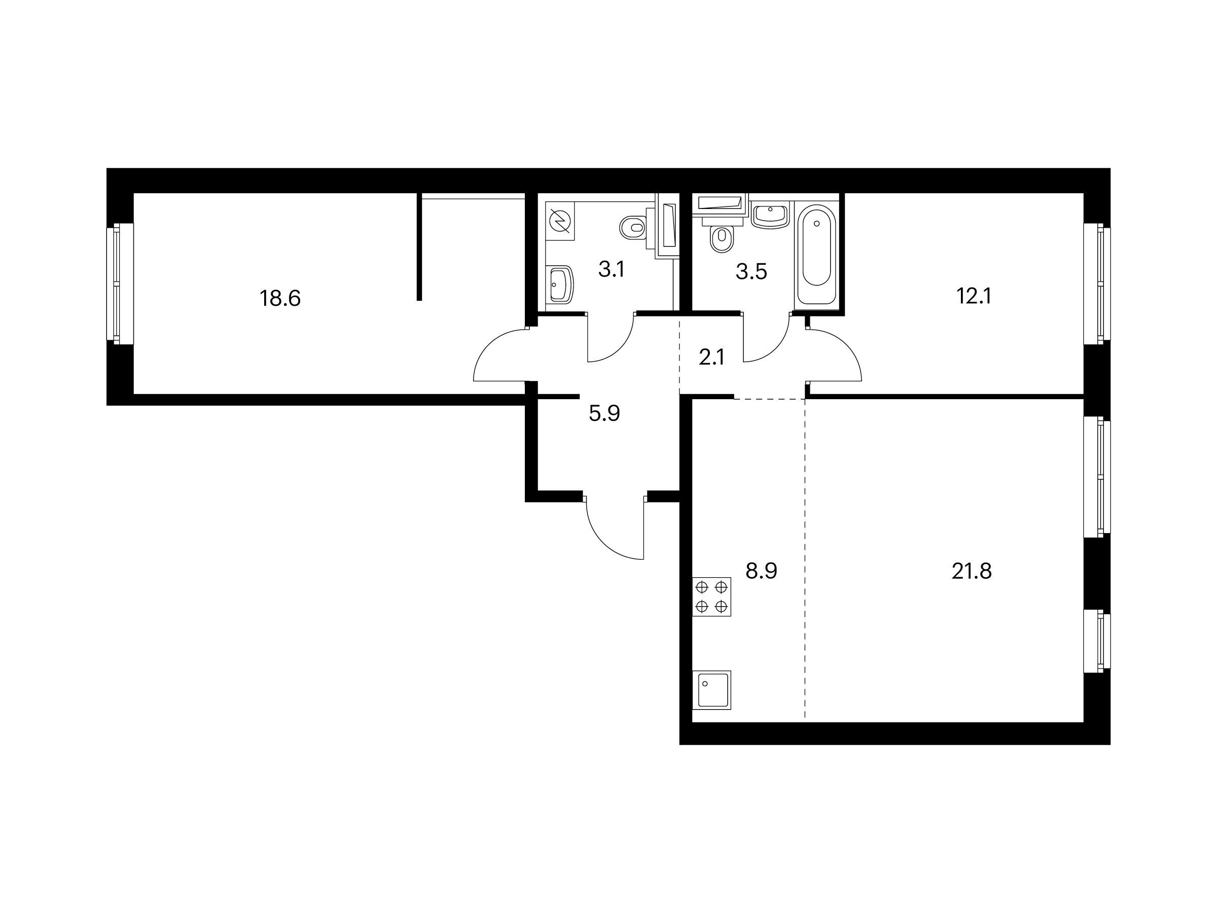 44.3 - 76 м²