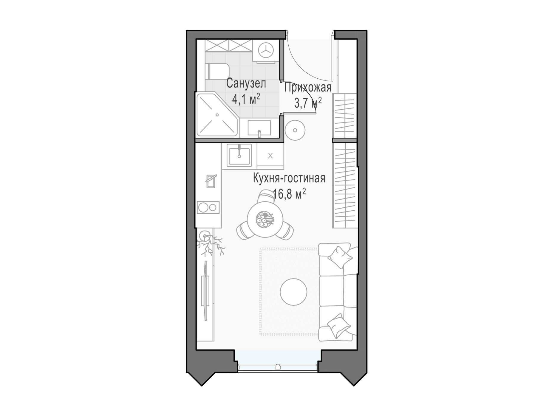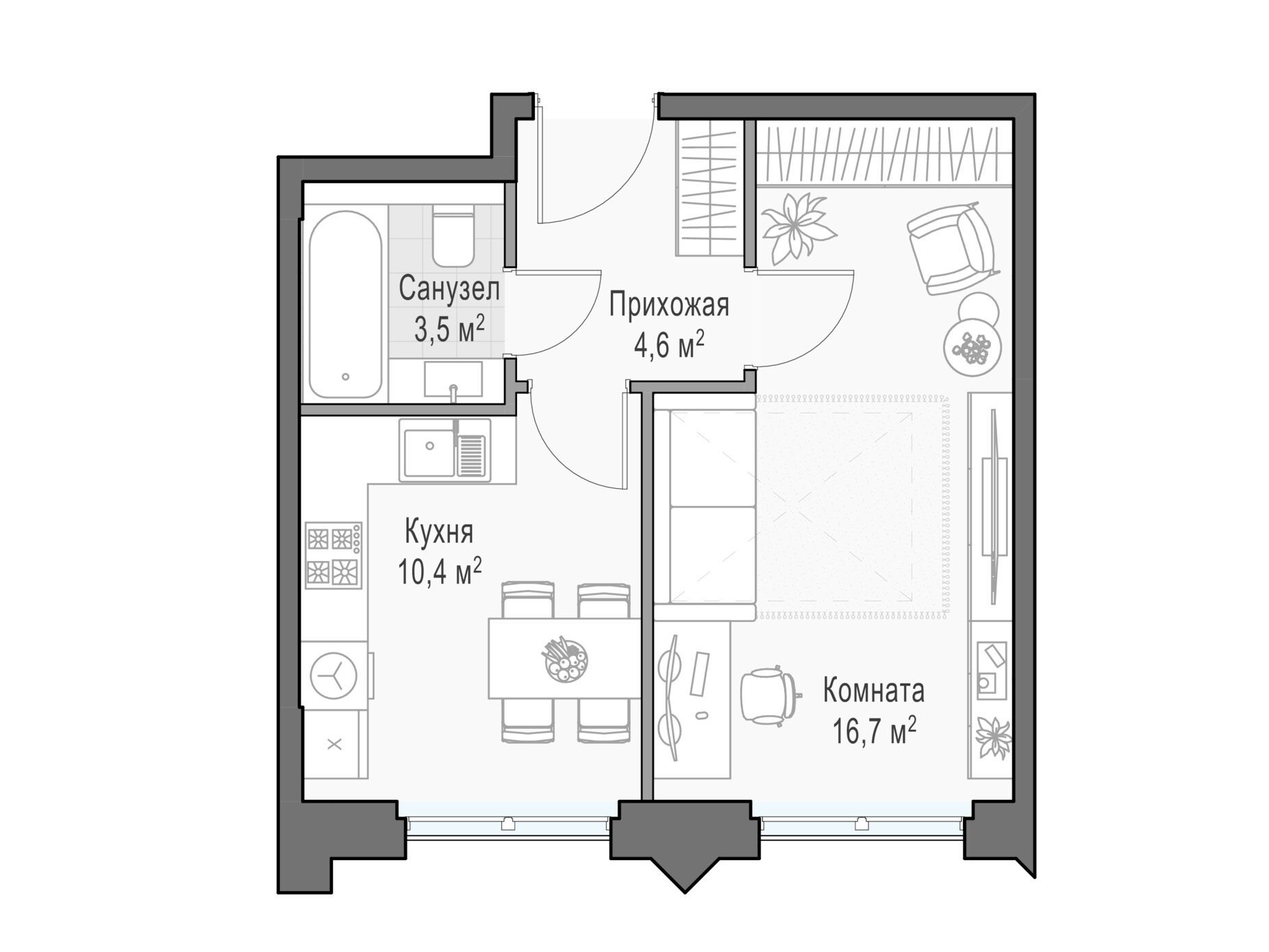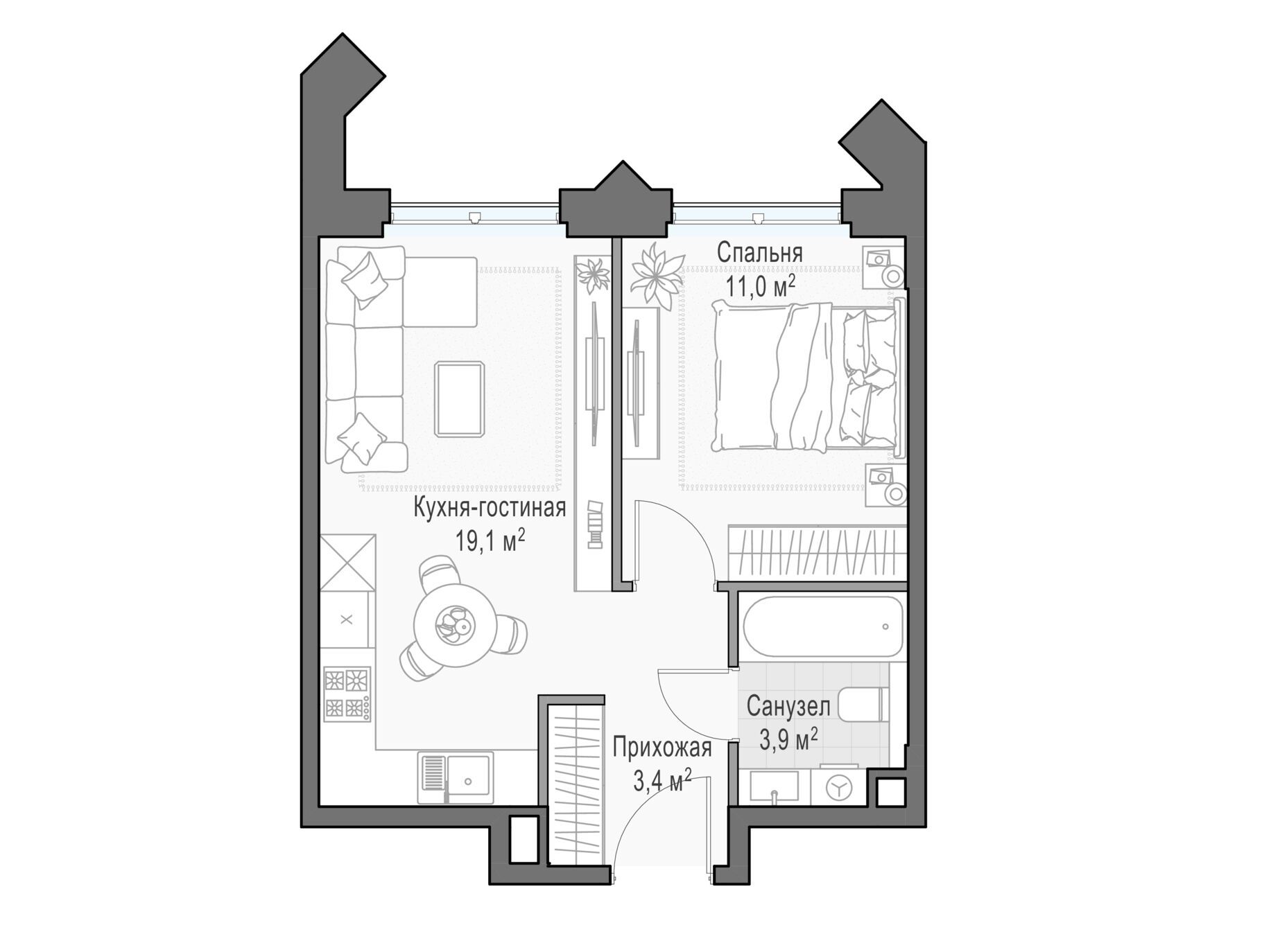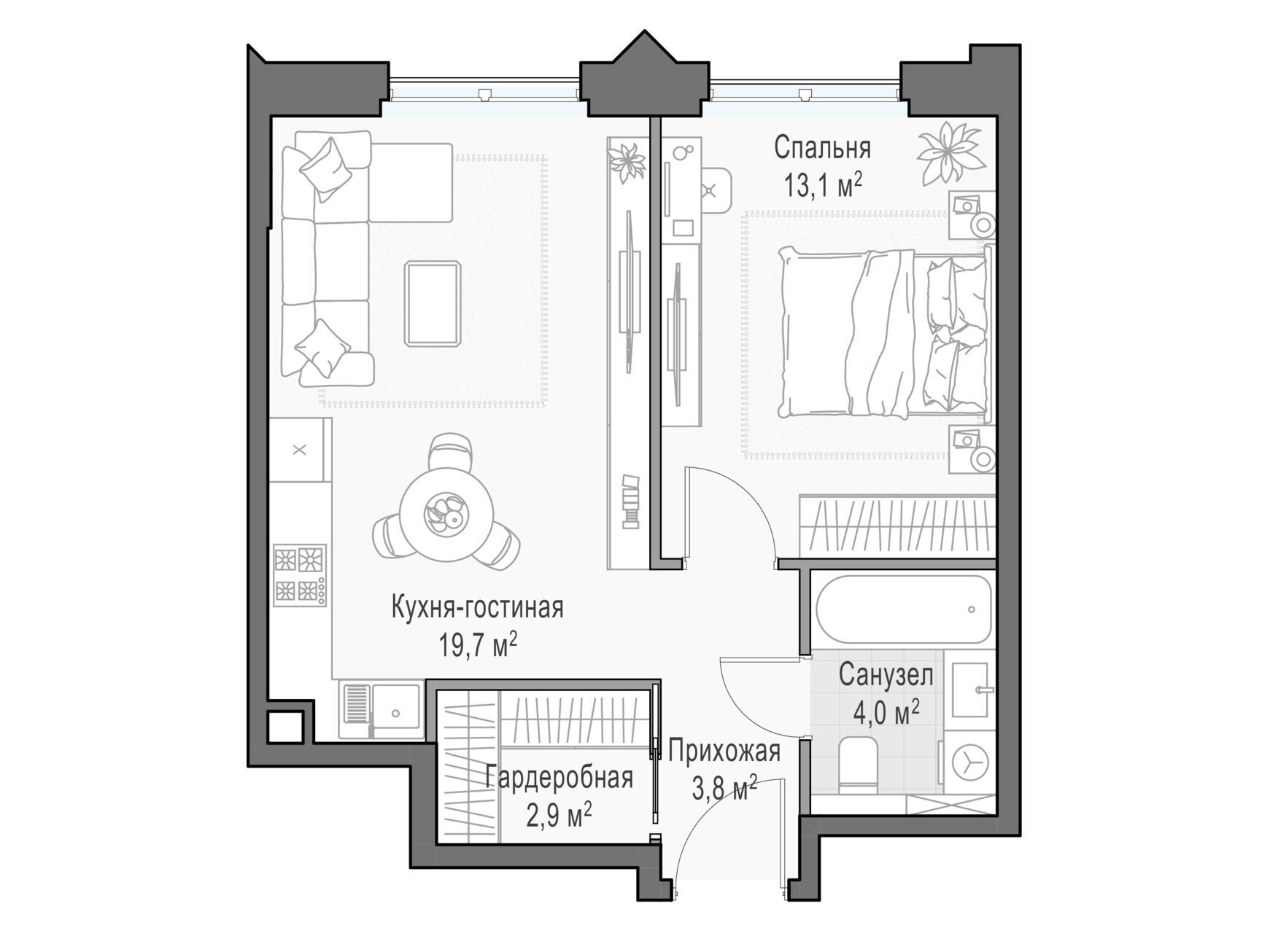 В проекте предусмотрены более 115 продуманных планировочных решений, чтобы каждый житель мог реализовать свои мечты и жить с комфортом, не переплачивая за лишние метры. В доме 1 214 квартир разных форматов: студии, квартиры с террасами, с камином, с окном в ванной или гардеробной комнате, пентхаусы с высотой потолков до 6,5 метров и террасами с панорамными видами на парки или центр города.