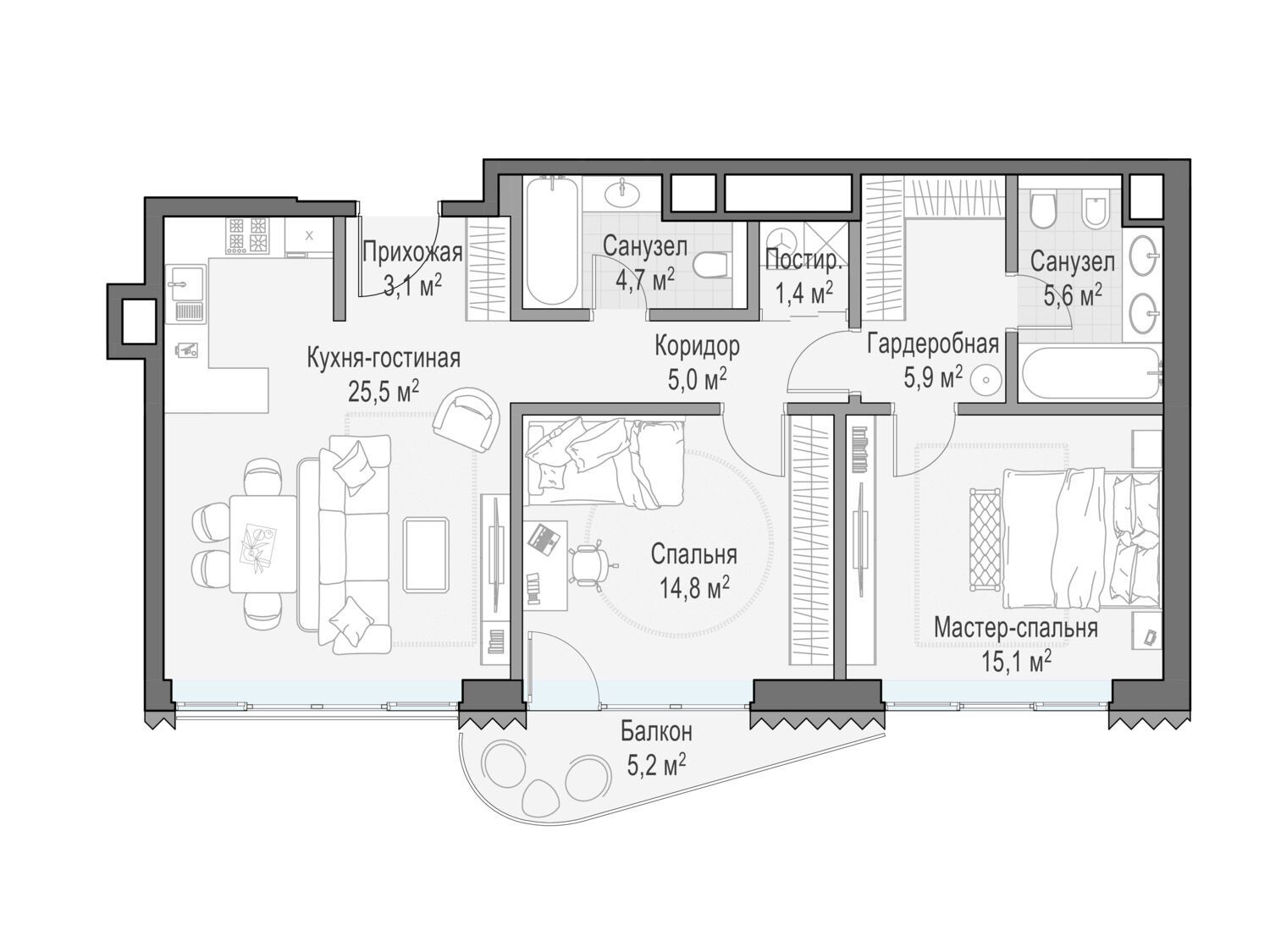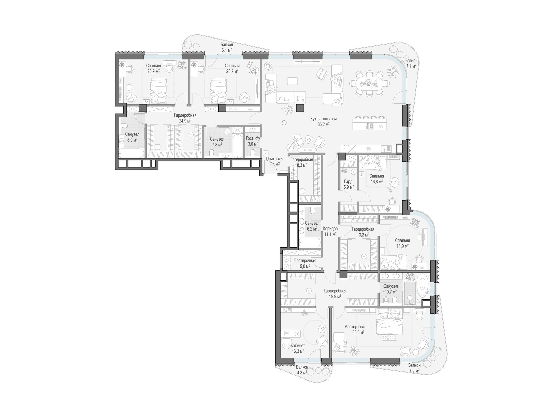 Архитектура дома помогает раскрыть панорамные виды на Кремль из большинства квартир. На просторных балконах и террасах можно комфортно проводить время, наслаждаясь очарованием исторического центра Москвы.