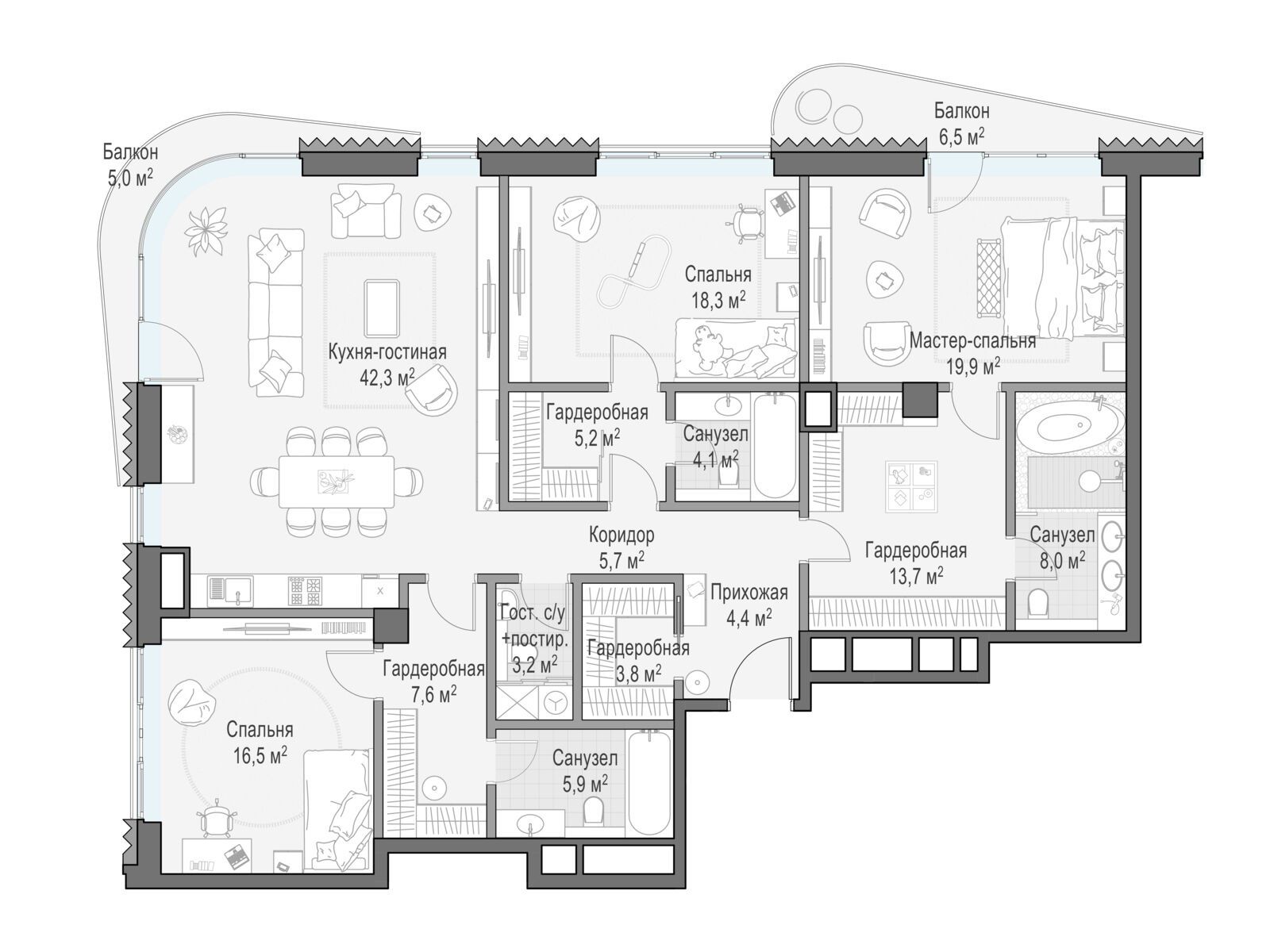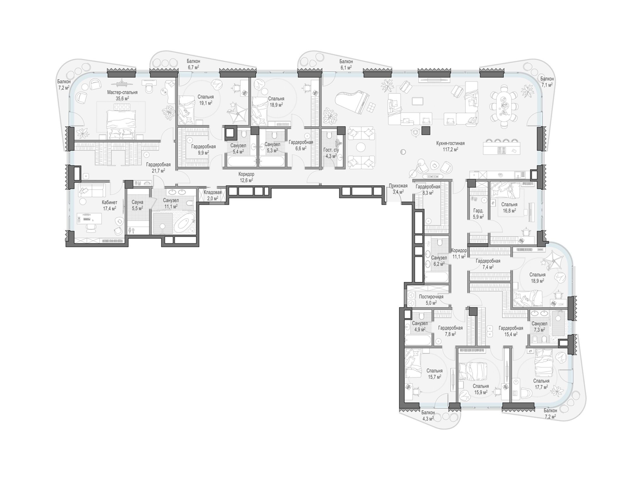 В доме предусмотрено 109 продуманных планировочных решений, чтобы каждый житель мог реализовать свою мечту и жить с комфортом. В проекте представлен уникальный выбор роскошных вилл, квартир и пентхаусов с максимальными видовыми характеристиками и каминами. В виллах и пентхаусах — собственные бассейны и террасы. Редкое предложение High Level — квартиры на предпоследнем этаже с каминами и увеличенными потолками высотой до 4 м.