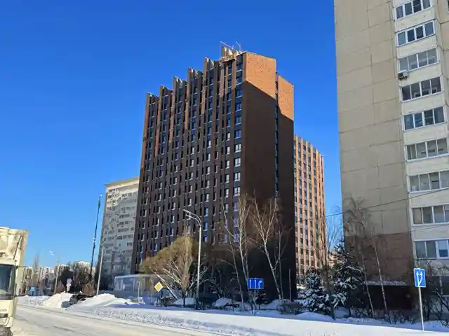 Здание представляет собой 16-этажный монолитно-кирпичный корпус, рассчитанный на 461 номер. Фасады облицованы кирпичом разных оттенков, а панорамное остекление добавляет современному облику нотки классики. Из номеров открывается вид на окружающую местность.