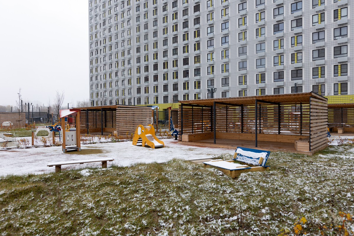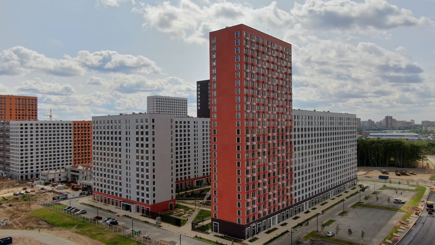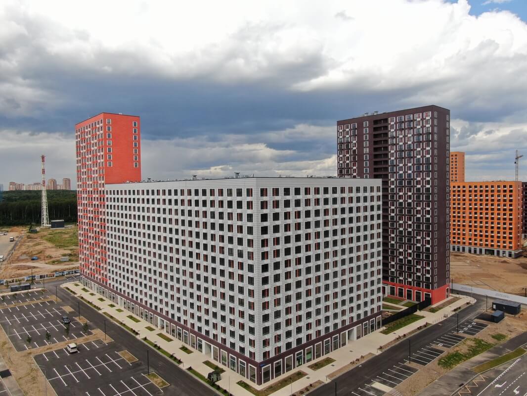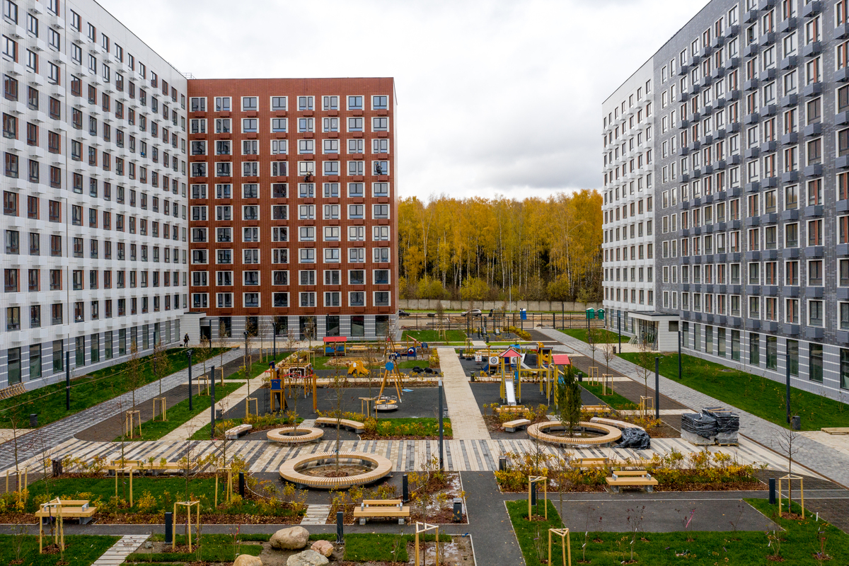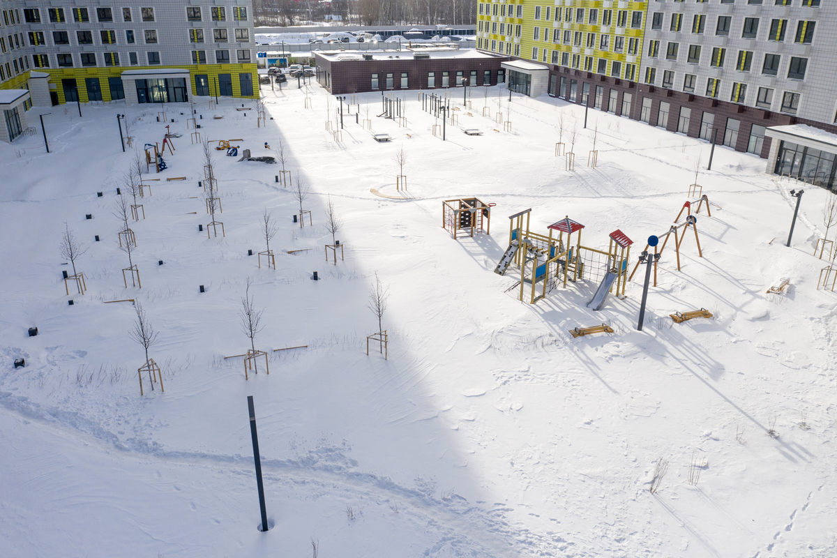В районе будет 13 домов, пять многоуровневых паркингов и три детских сада, два из которых уже открылись. Работают школа и поликлиника, на первых этажах жилых корпусов — магазины, кафе и другие полезные сервисы.