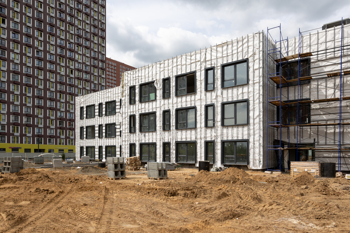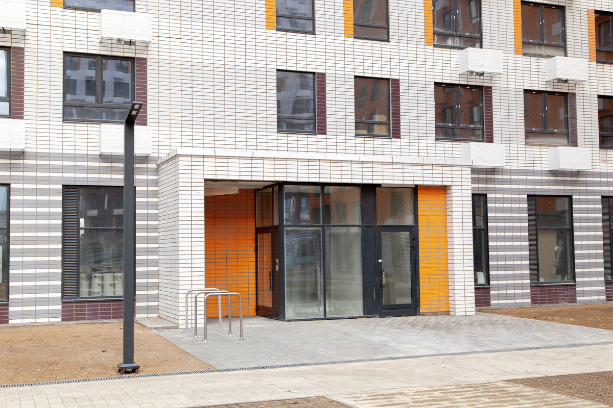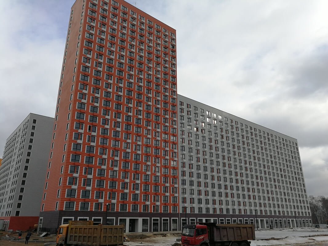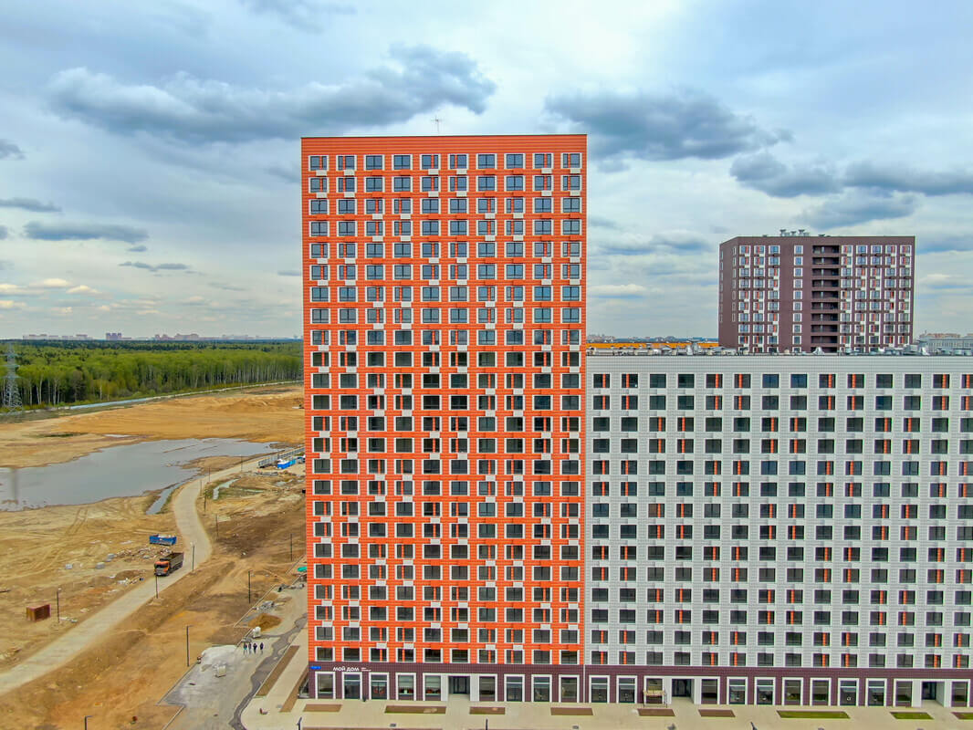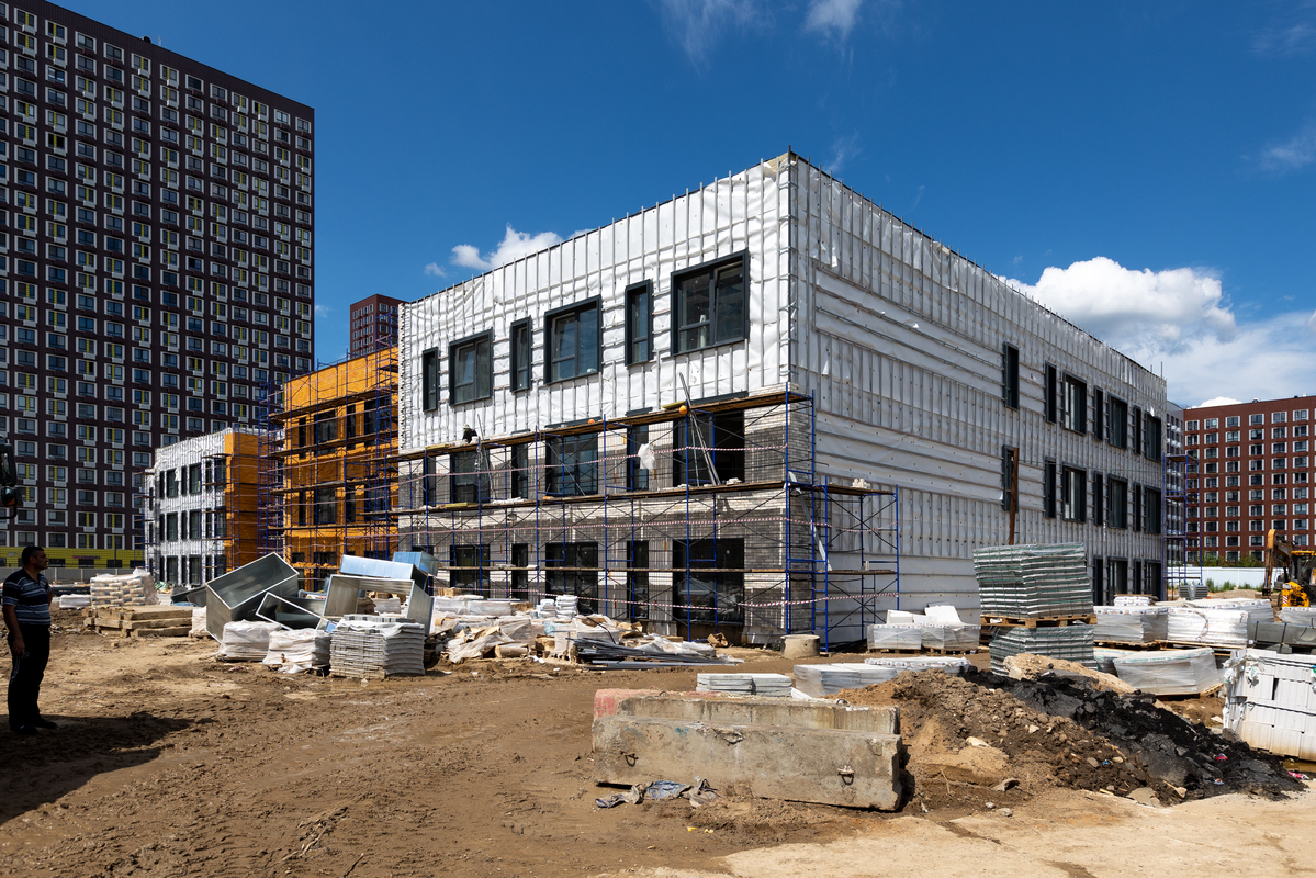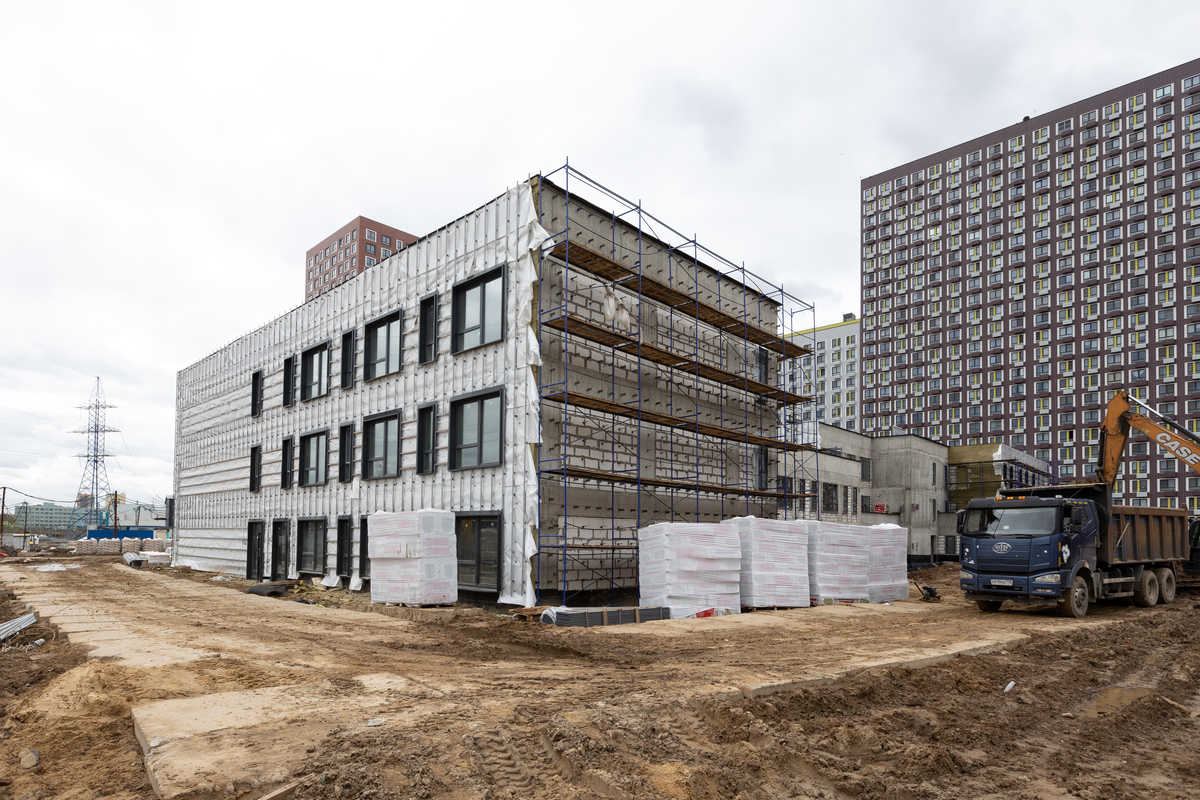 В районе будет 13 домов, пять многоуровневых паркингов и три детских сада, два из которых уже открылись. Работают школа и поликлиника, на первых этажах жилых корпусов — магазины, кафе и другие полезные сервисы.