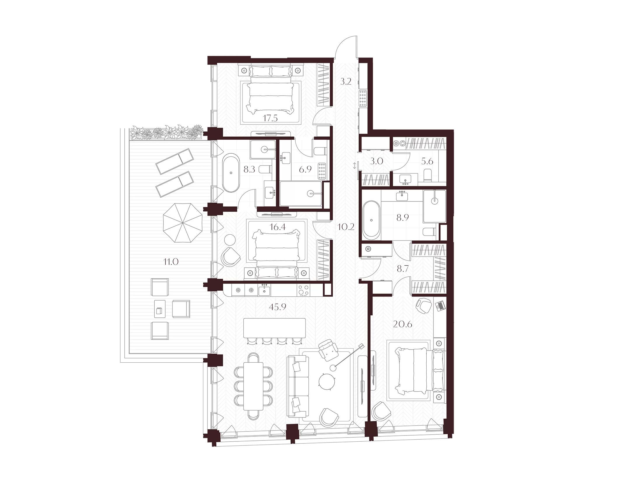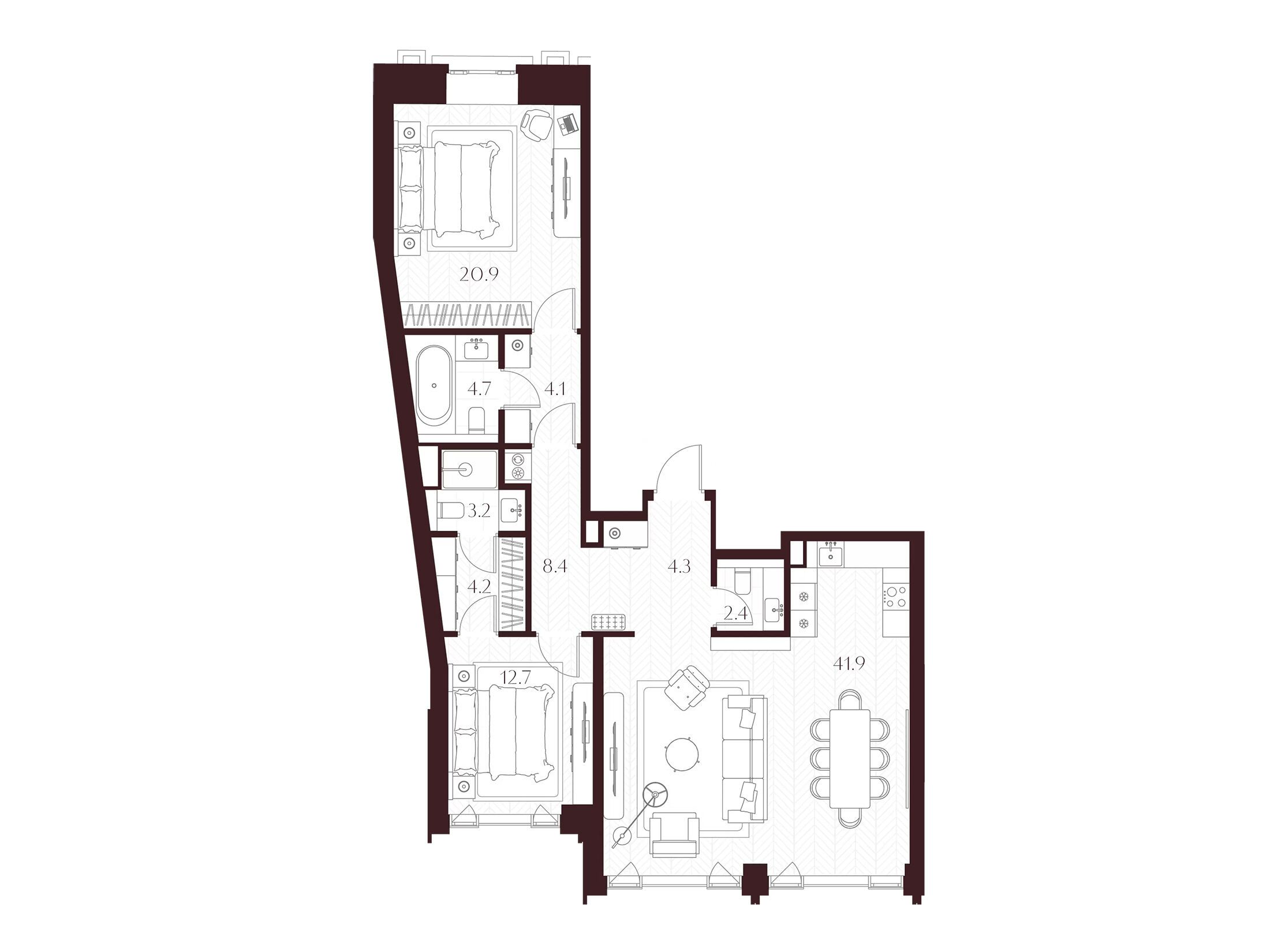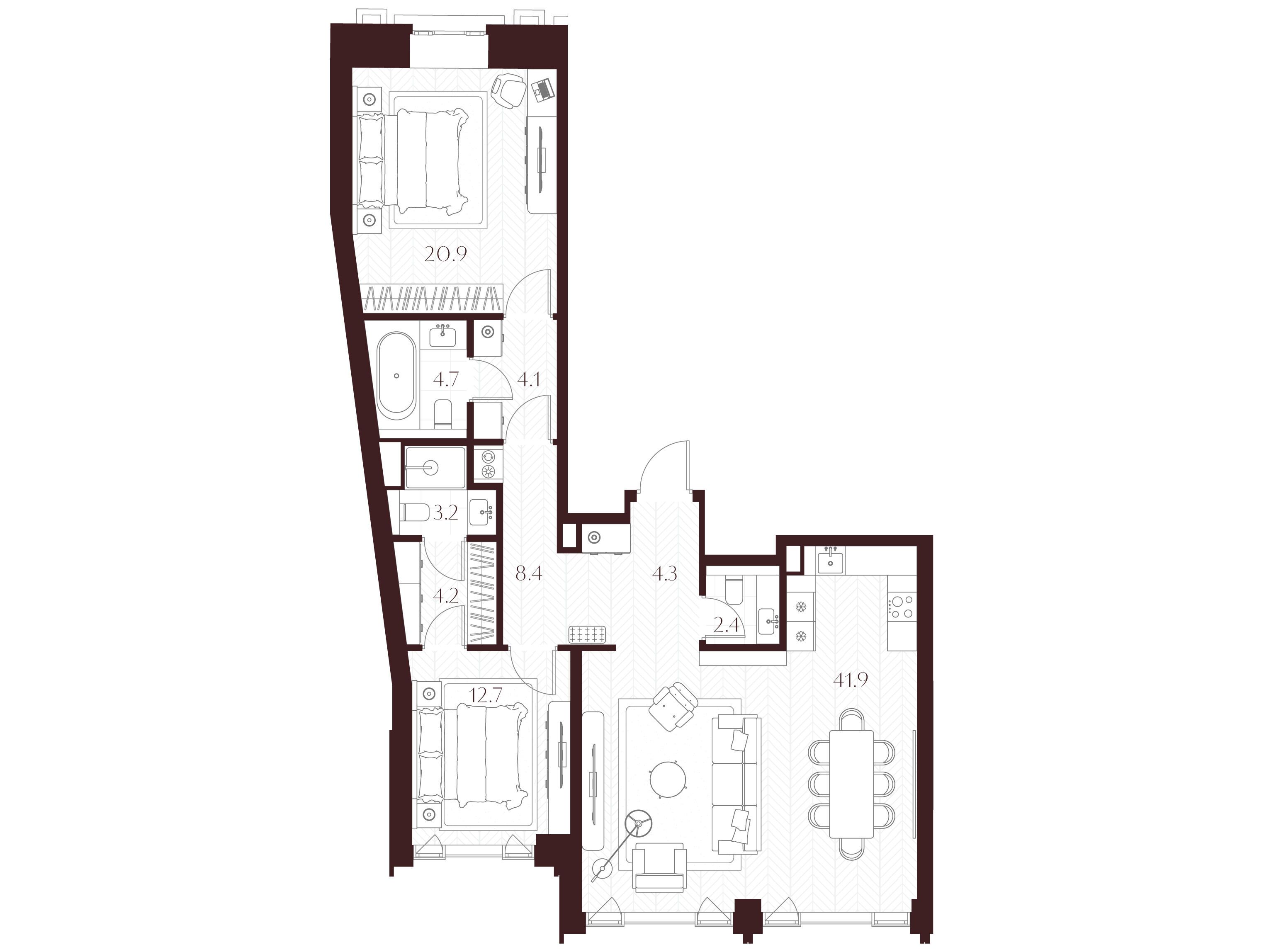 Во всех квартирах запроектированы просторные гостиные, продуманные системы хранения и мастер‑спальни. Квартиры сдаются без отделки, что позволяет владельцам реализовать индивидуальный дизайн‑проект.