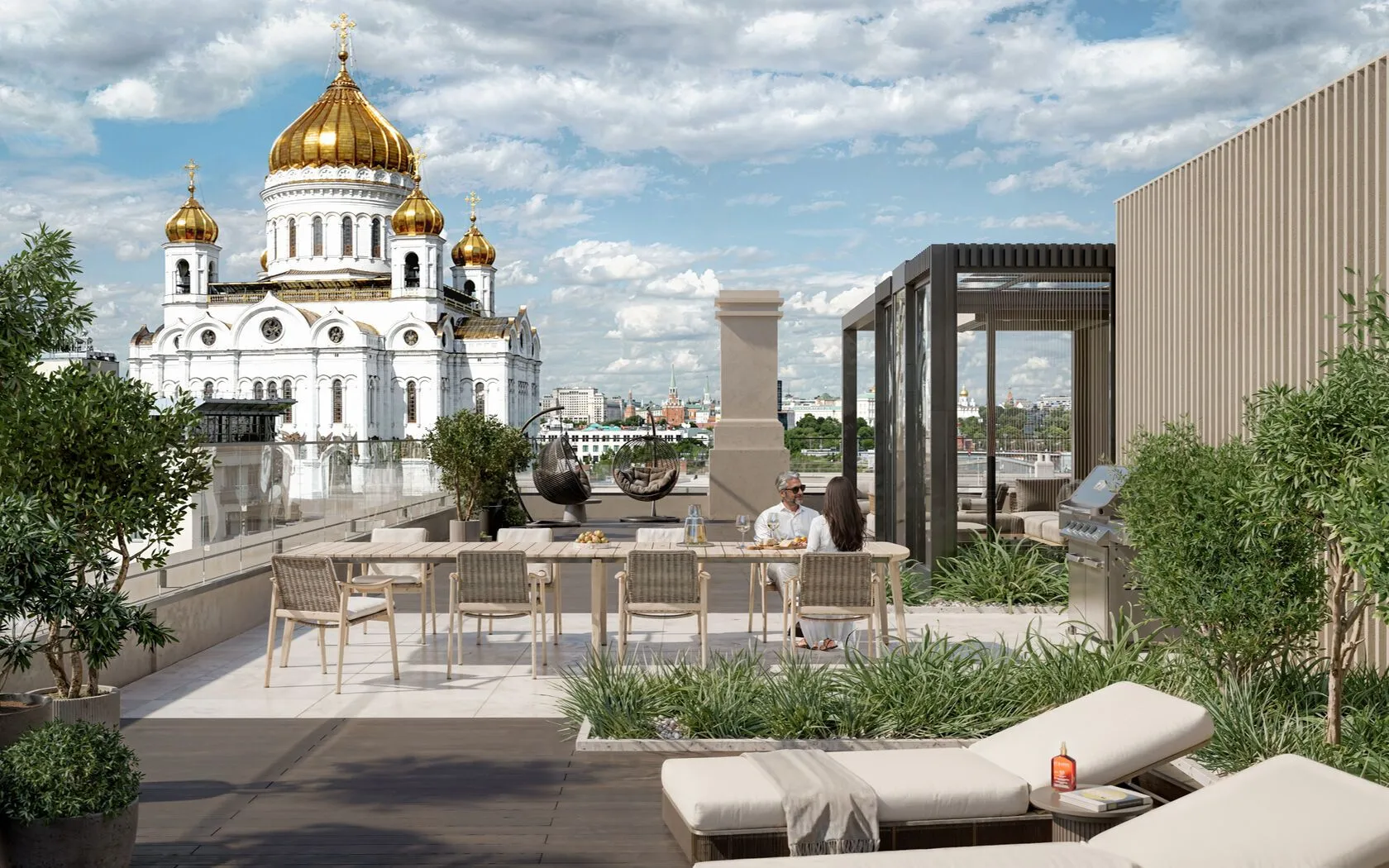 Из окон большинства лотов клубного дома открываются прекрасные виды на храм Христа Спасителя, Кремль, храм пророка Илии, тихие улочки Остоженки. В ближайшем окружении — Пречистенская и Кремлевская набережные и Бульварное кольцо, по которым приятно прогуливаться вечерами.