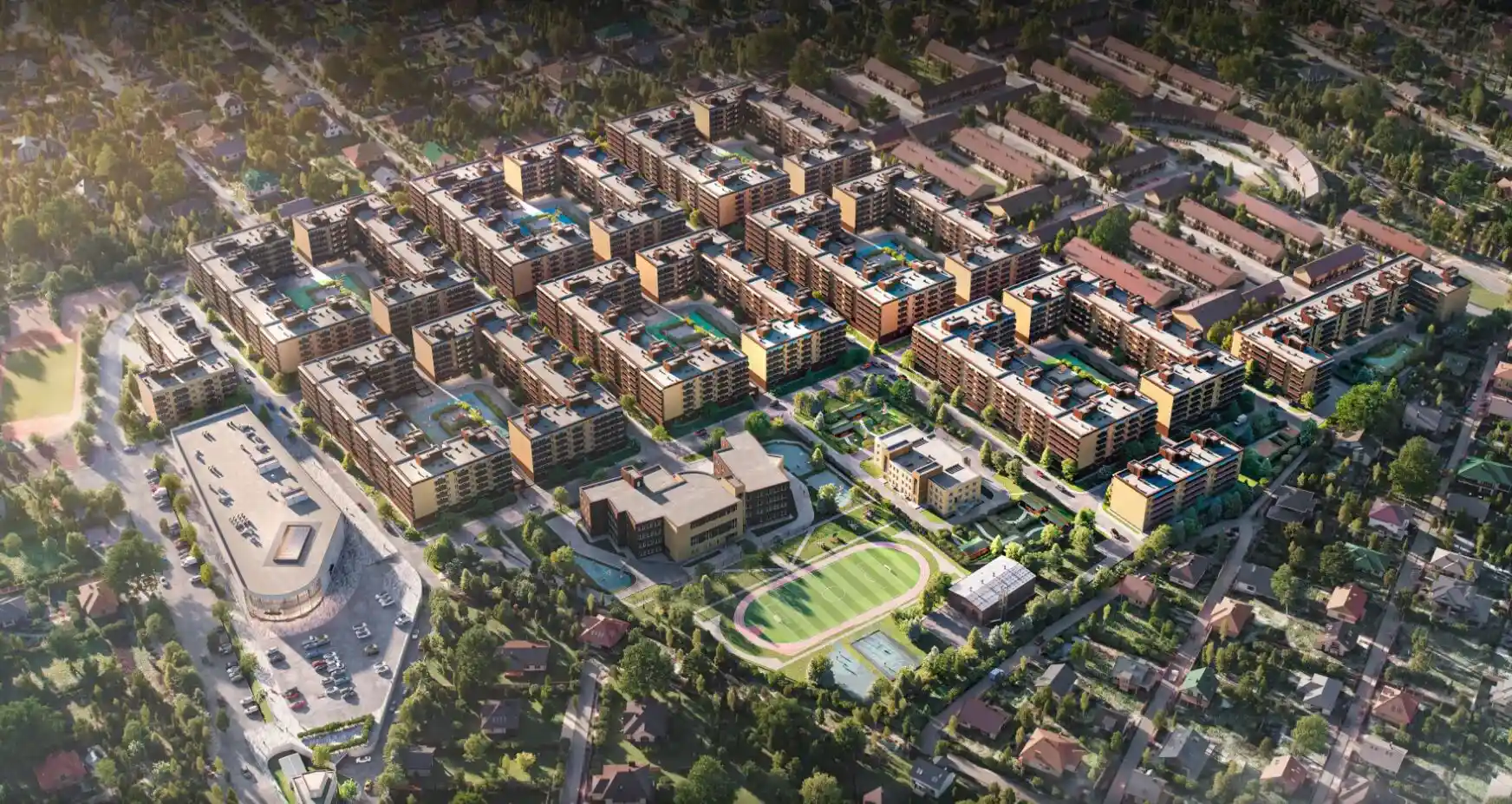 Комплекс состоит из 185 корпусов с этажностью от 2 до 5 этажей. Покупателям доступны различные варианты отделки: чистовая, черновая и предчистовая. Это позволяет будущим жильцам выбрать тот уровень готовности жилья, который им подходит.