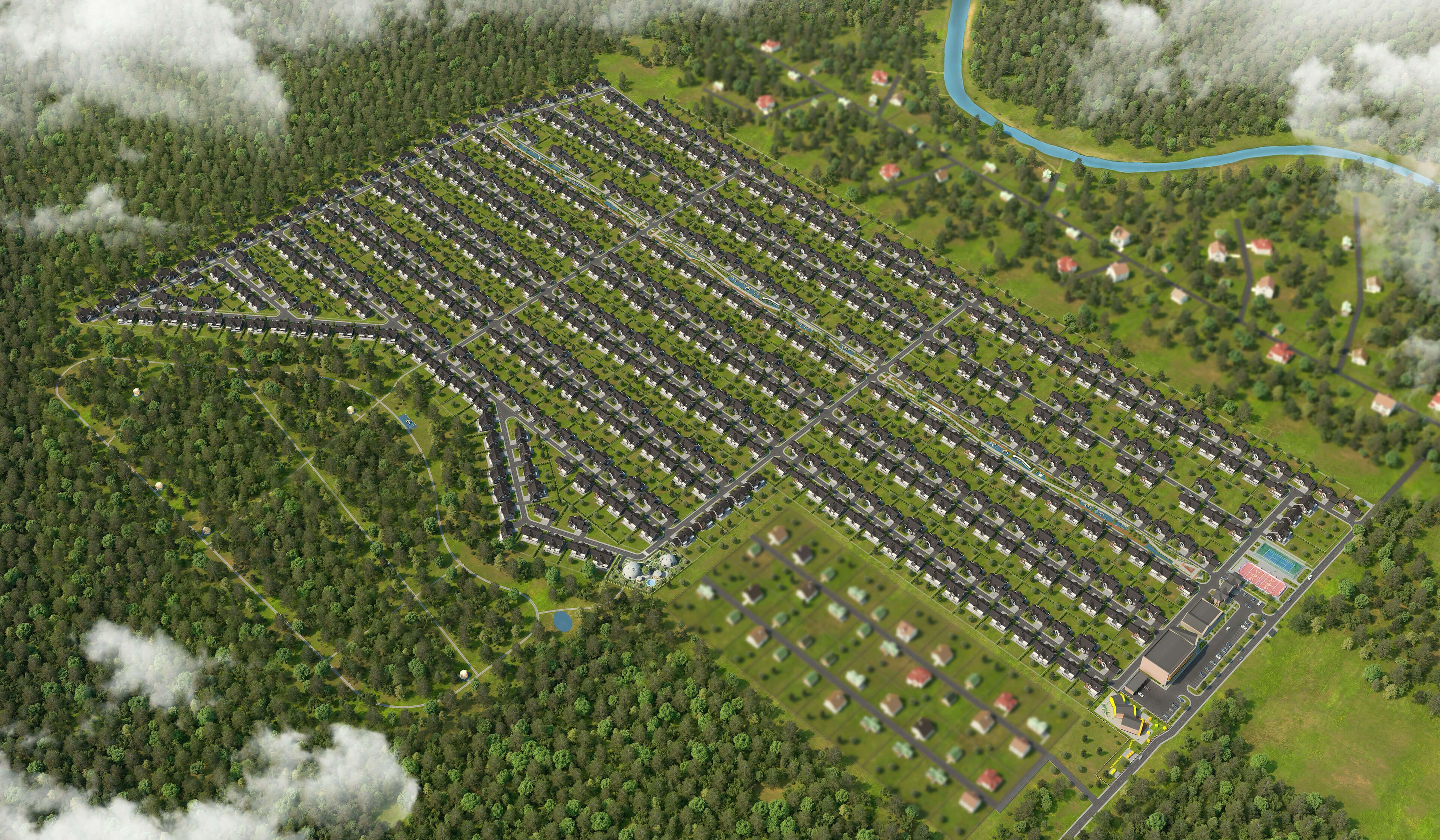 Посёлок состоит из 589 двухэтажных кирпичных коттеджей площадью от 120 до 230 м² на участках от 6 до 12 соток. Дома возведены на железобетонных сваях, стены выполнены из керамоблока, кровли покрыты натуральной черепицей. Фасады отделаны кирпичом от производителя Engels Baksteen из Нидерландов. Архитектура выполнена в минималистичном стиле с использованием природных фактур и натуральных материалов.