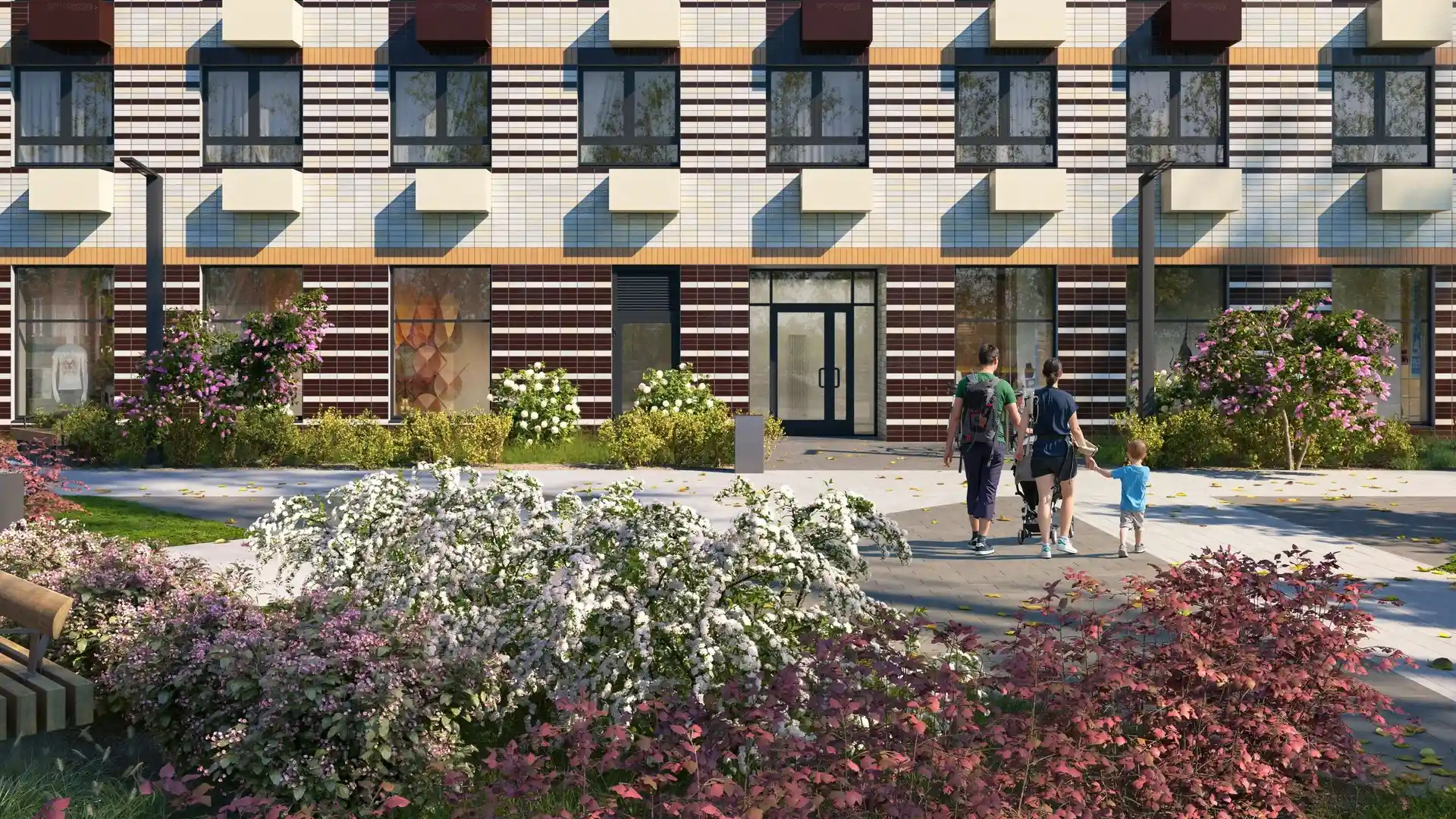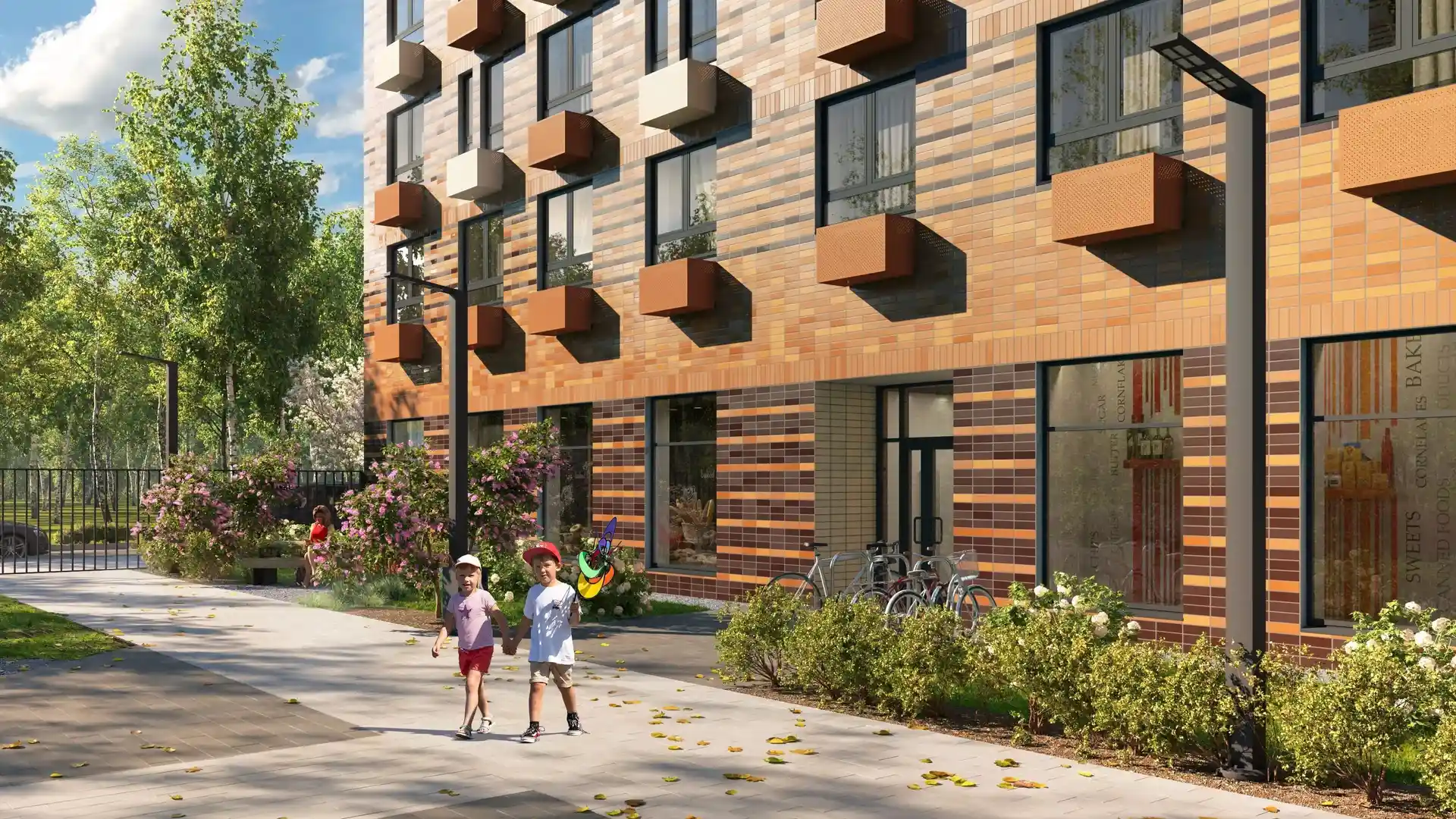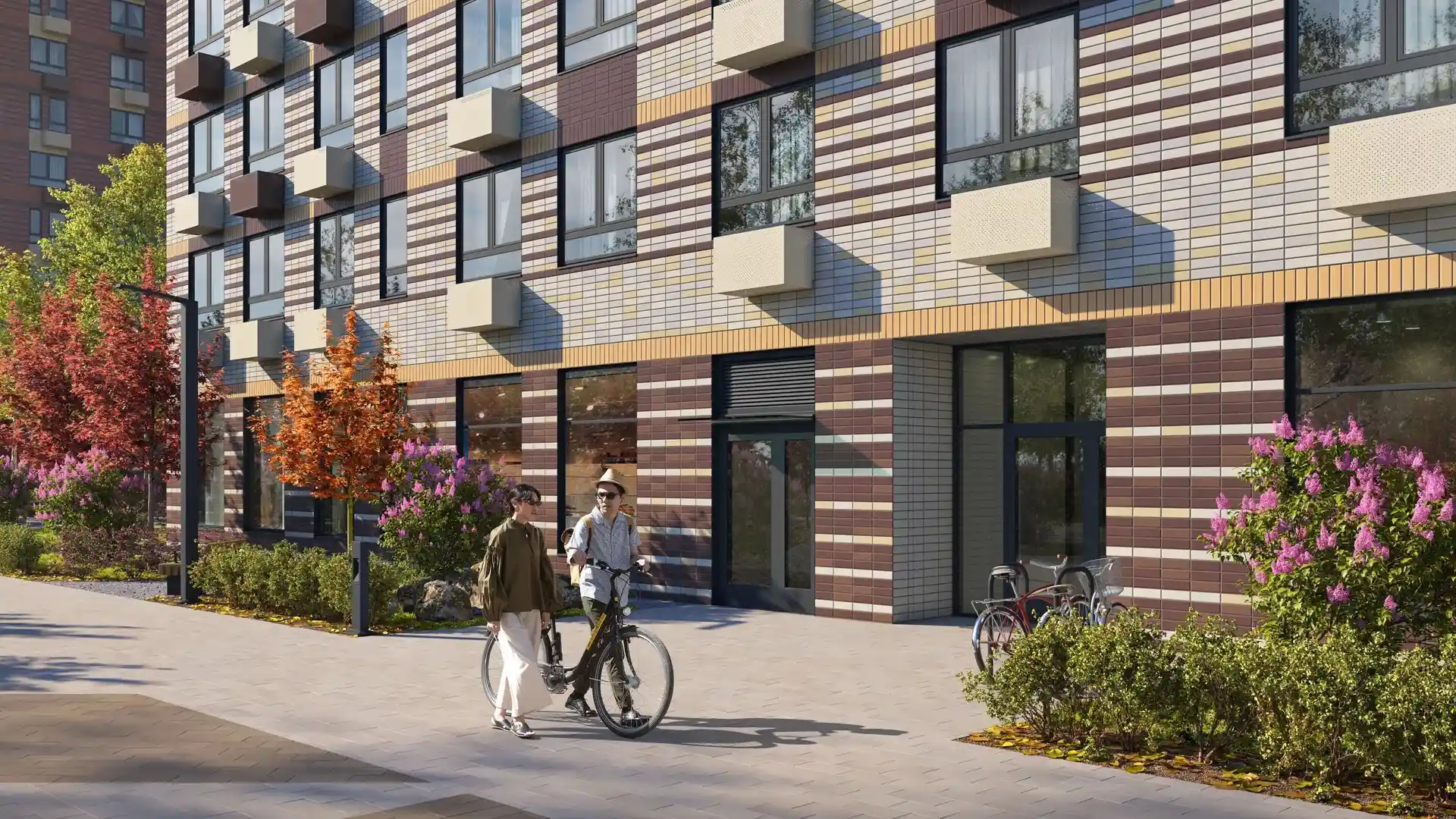 Инфраструктура комплекса включает подземный паркинг на 343 машино‑места с доступом через мобильное приложение, индивидуальные кладовые помещения, коммерческие площади на первых этажах для магазинов, салонов красоты, медицинского центра, кафе и других сервисов. Входные группы выполнены с панорамным остеклением и высокими потолками, предусмотрены места для хранения велосипедов и колясок. Во дворе обустроен парк с детскими и спортивными площадками, воркаут‑зонами с турниками и брусьями, а также площадками для активных видов спорта вдали от центрального двора, чтобы минимизировать шум. На территории запланированы школа и детский сад, открытие которых намечено на второй квартал 2025 года. Безопасность жителей обеспечивают смарт‑домофоны и система видеонаблюдения.
