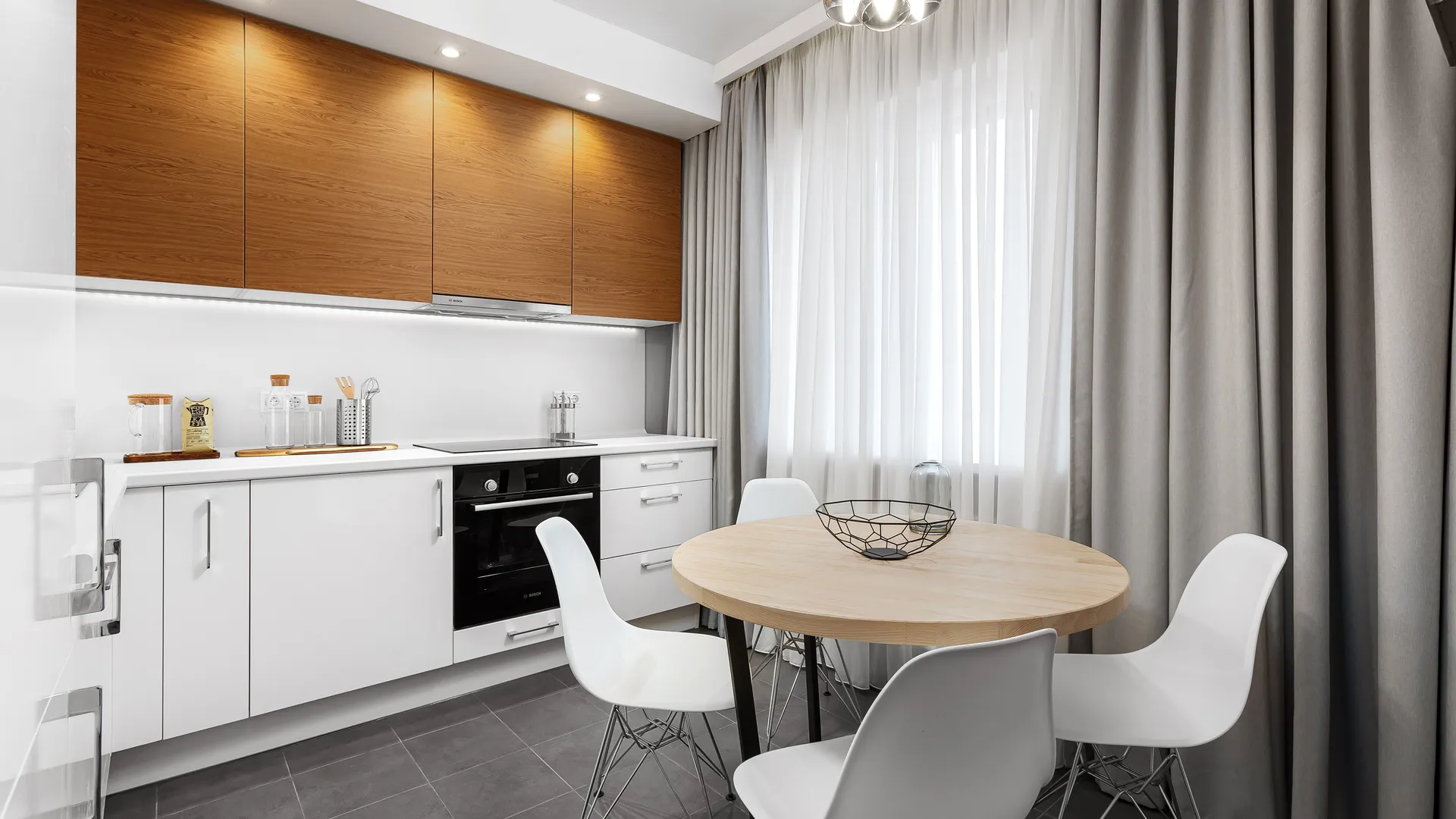 Интерьеры квартир в ЖК «Парк Легенд» выполнены в жемчужно-бежевых и дымчатых тонах, что придает каждому помещению особый шарм. Встроенная кухня с техникой от мировых брендов Bosch и Candy является настоящей изюминкой каждой квартиры. Здесь вы сможете создавать кулинарные шедевры, не беспокоясь о деталях.