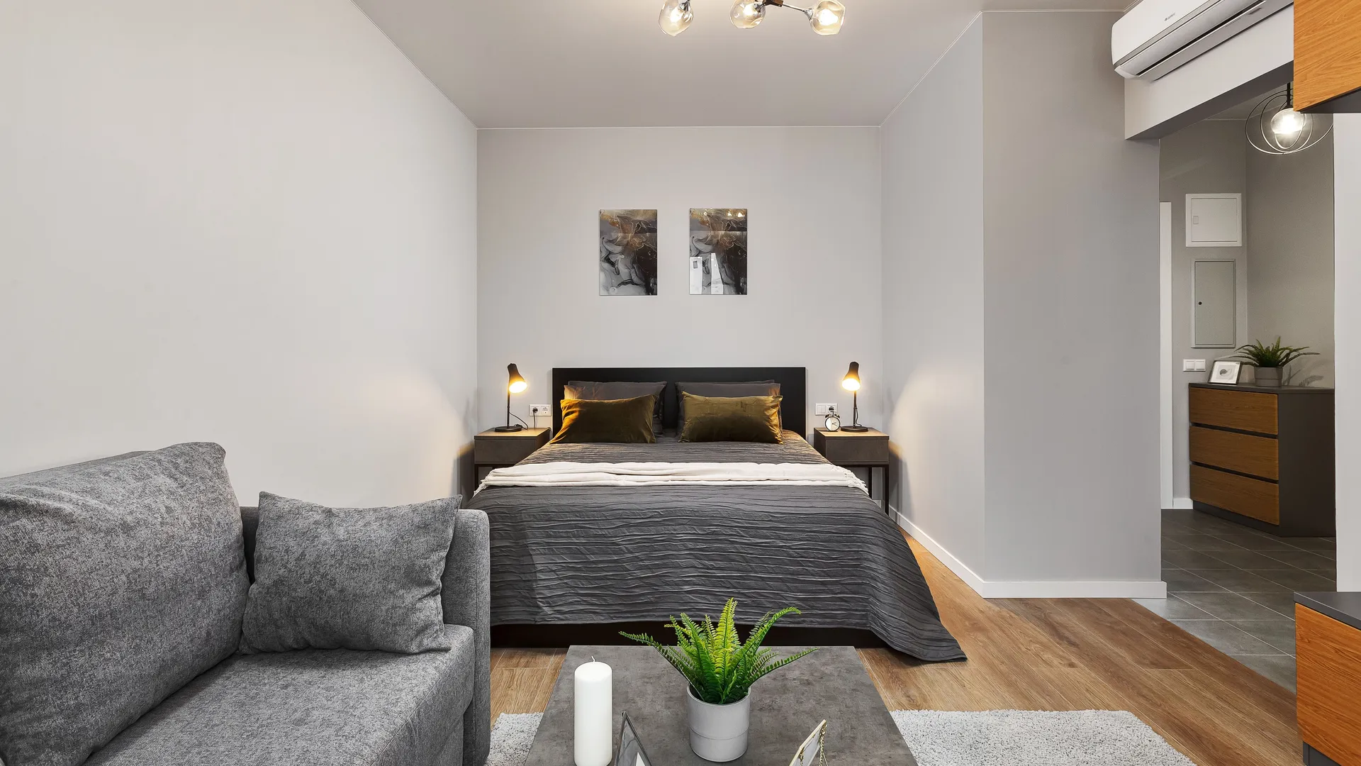 Дополнительно, каждая квартира оборудована настенной сплит-системой Gree, которая обеспечивает комфортную температуру в помещении в любое время года. Вы сможете наслаждаться прохладой летом и теплом зимой, создавая идеальный микроклимат для вашего уюта.
