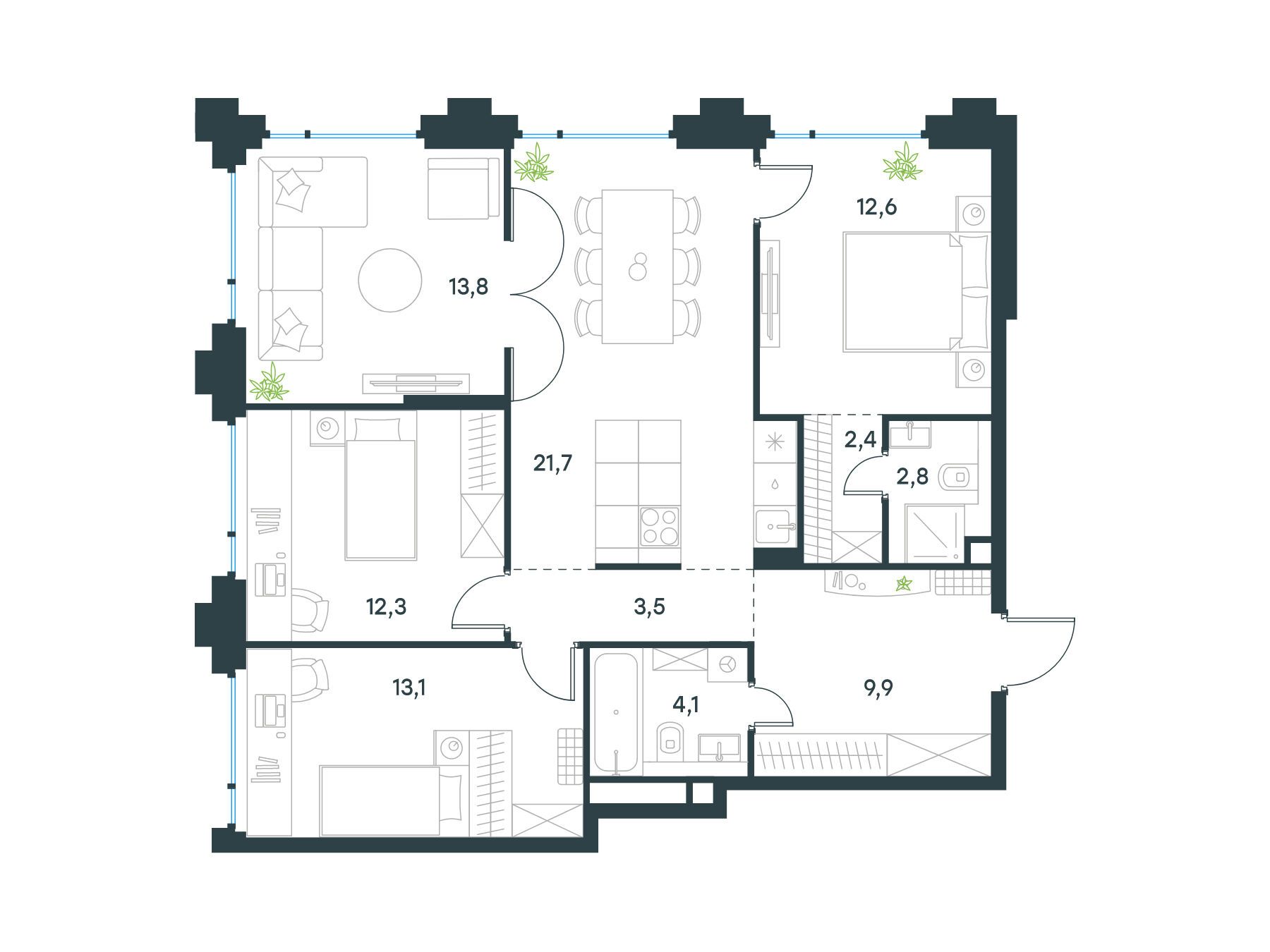 Высота потолков варьируется от 3.02 м до 6.3 м, создавая ощущение простора и комфорта. Жильцам предлагается более 20 вариантов планировочных решений, включая как стандартные планировки, так и евро-формат.