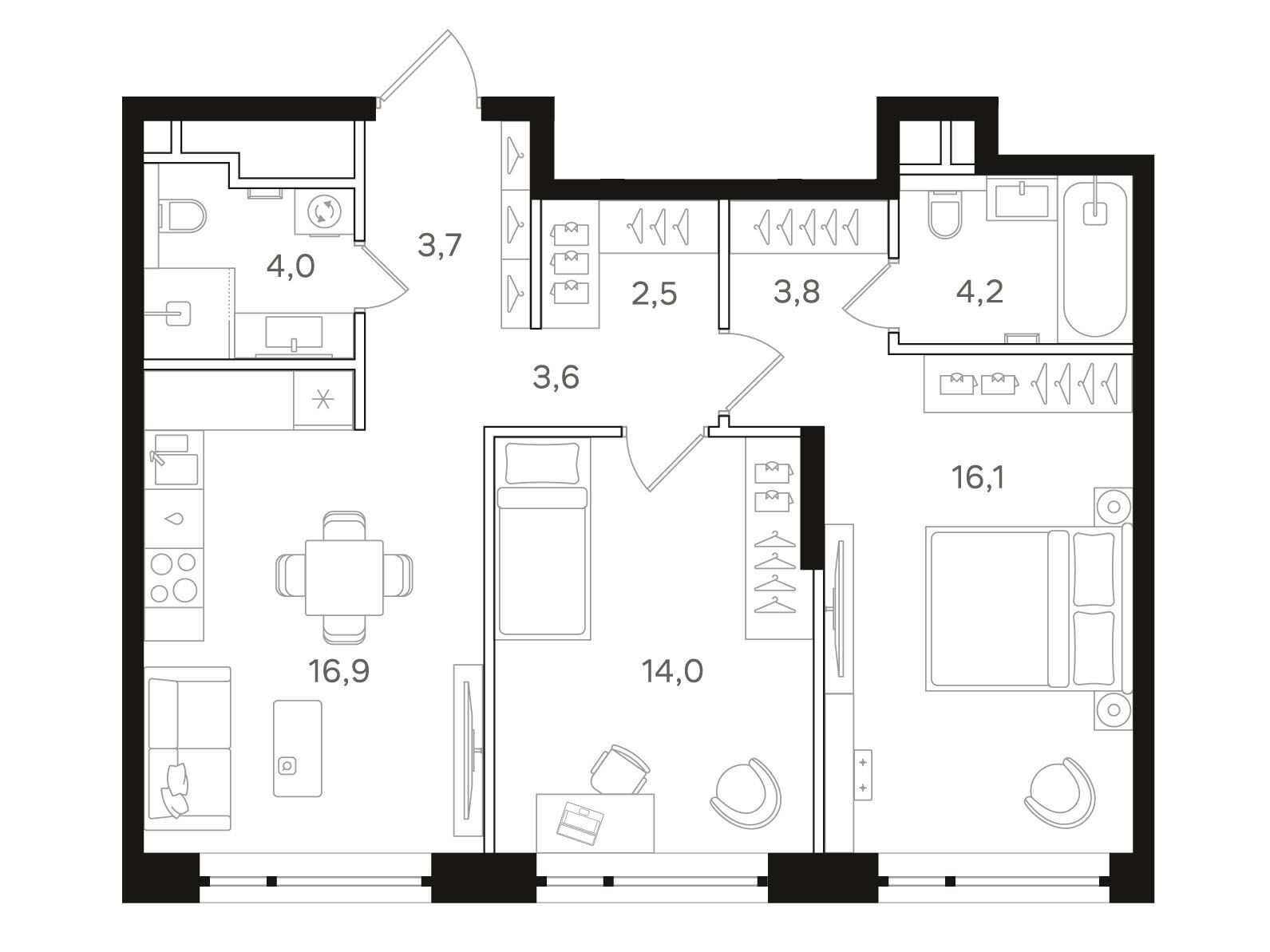 Здесь предлагается широкий выбор квартир, начиная от студий площадью от 25 кв. м, с потолками от 2.85 м, и заканчивая трехспальными апартаментами с мастер-спальнями, большими открытыми террасами и уникальными видовыми характеристиками. Максимальная площадь квартиры составляет 125 кв.м.