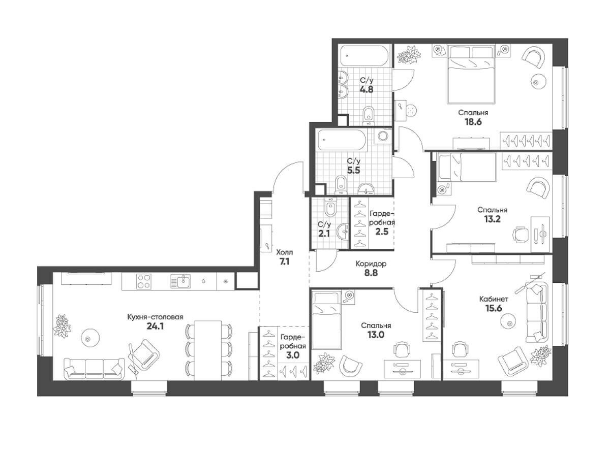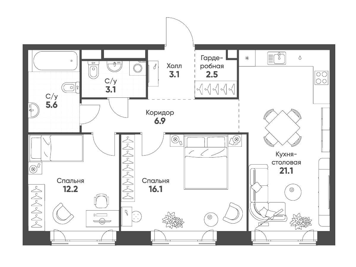 В ЖК Мариин Парк представлено свыше 2 000 квартир различных форматов — от компактных студий площадью от 27,5 кв. м до просторных четырёхкомнатных вариантов до 105 кв. м. Высота потолков составляет 2,85 м, что создаёт ощущение простора и комфорта. Среди планировок — квартиры с кухнями‑гостиными, мастер‑спальнями с отдельными ванными комнатами и гардеробными, а также лоты с балконами и лоджиями. Жильё предлагается как с чистовой отделкой в нескольких дизайнерских стилях (скандинавский, минимализм, неоклассика), так и без отделки — для тех, кто планирует реализовать собственные идеи. В квартирах предусмотрены эргономичные планировки, удобные зоны хранения и продуманное зонирование пространства.