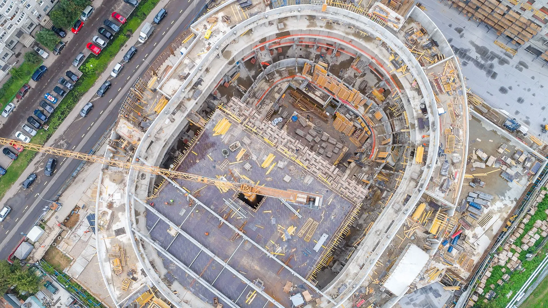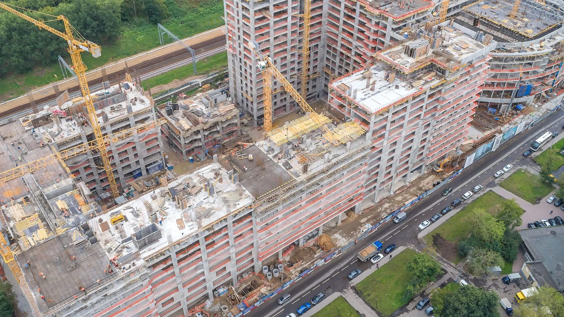 Территория комплекса закрыта и благоустроена: во дворе без машин выполнено ландшафтное озеленение, установлены детские и спортивные площадки, зоны отдыха и велопарковки. Для автовладельцев предусмотрен трехуровневый подземный паркинг на 1602 машино‑места с автомойкой и прямым доступом на лифте из здания.