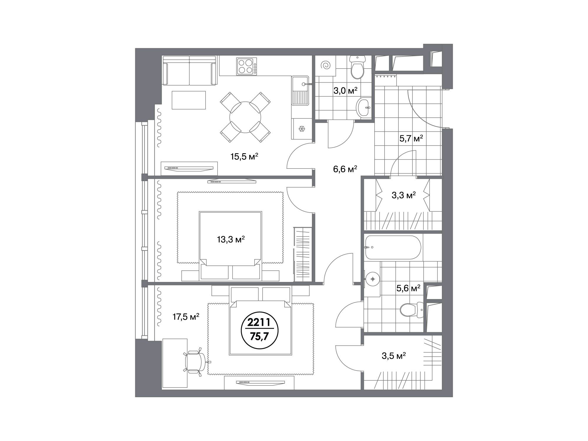 34.7 - 75.8 м²