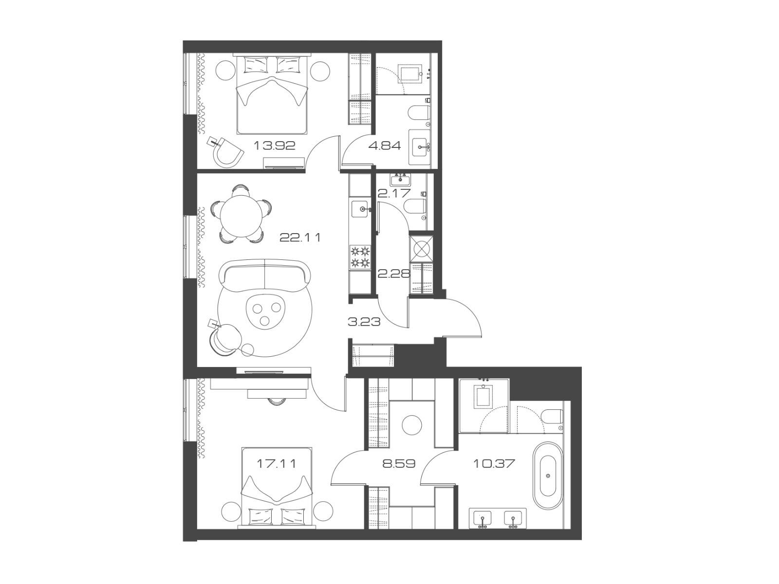 Состоящий из 17 этажей, комплекс предлагает 330 лотов с отделкой под чистовую площадью от 31 до 223 квадратных метров. На верхних этажах вы найдете лоты с каминами и террасами, где можно наслаждаться прекрасными видами и проводить время с комфортом. В торцевых квартирах также имеются лоджии, где вы можете расслабиться и насладиться свежим воздухом.
