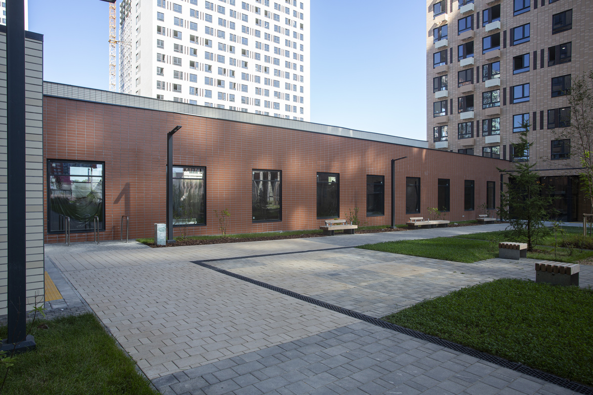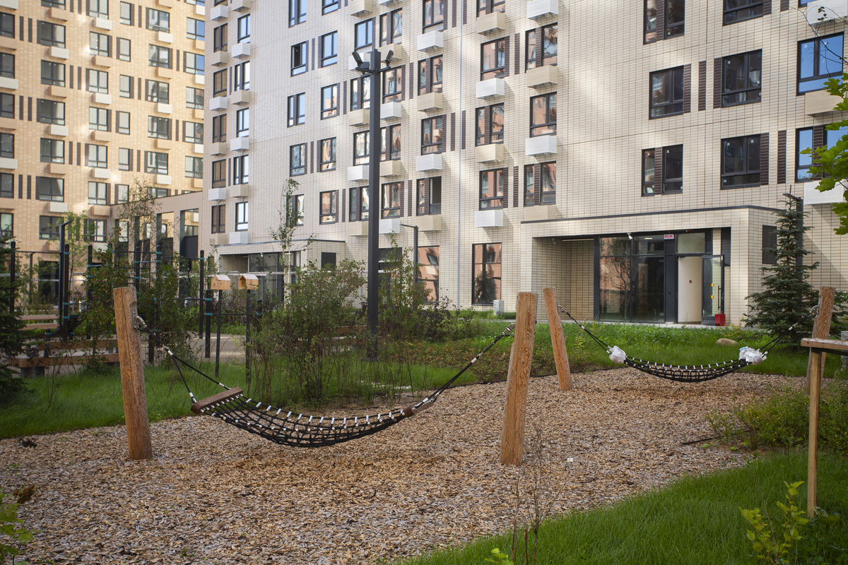 Рядом с жилым кварталом — хорошо развитый район. За 5 минут можно доехать до школ, детских садов, торговых центров, кафе и спортзалов. А в трёх минутах ходьбы находится Митинский парк, где приятно гулять и заниматься спортом.