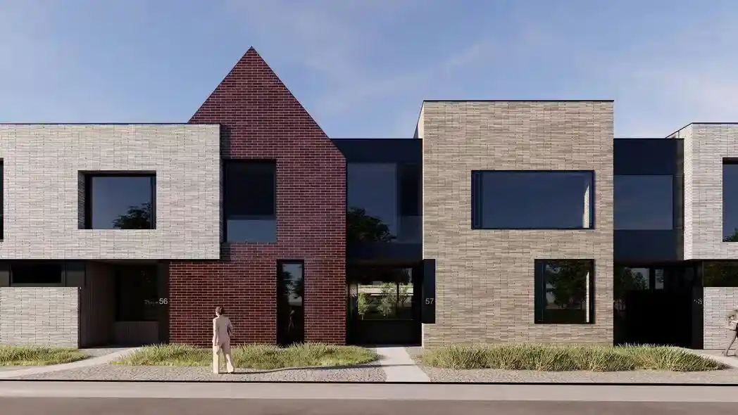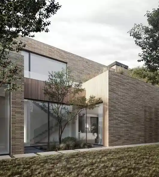 Комплекс состоит из нескольких разноэтажных корпусов высотой от 12 до 28 этажей, выстроенных по принципу квартальной застройки, что создаёт уютные закрытые дворы и обеспечивает хорошую инсоляцию квартир. Архитектурный облик разработан с учётом панорамных видов на реку: фасады выполнены в светлых тонах с элементами панорамного остекления, а ступенчатая композиция зданий позволяет большинству квартир иметь вид на водную гладь и зелёные зоны. В отделке фасадов использованы керамогранит, клинкерная плитка и алюминиевые панели, что придаёт комплексу современный и лаконичный вид.