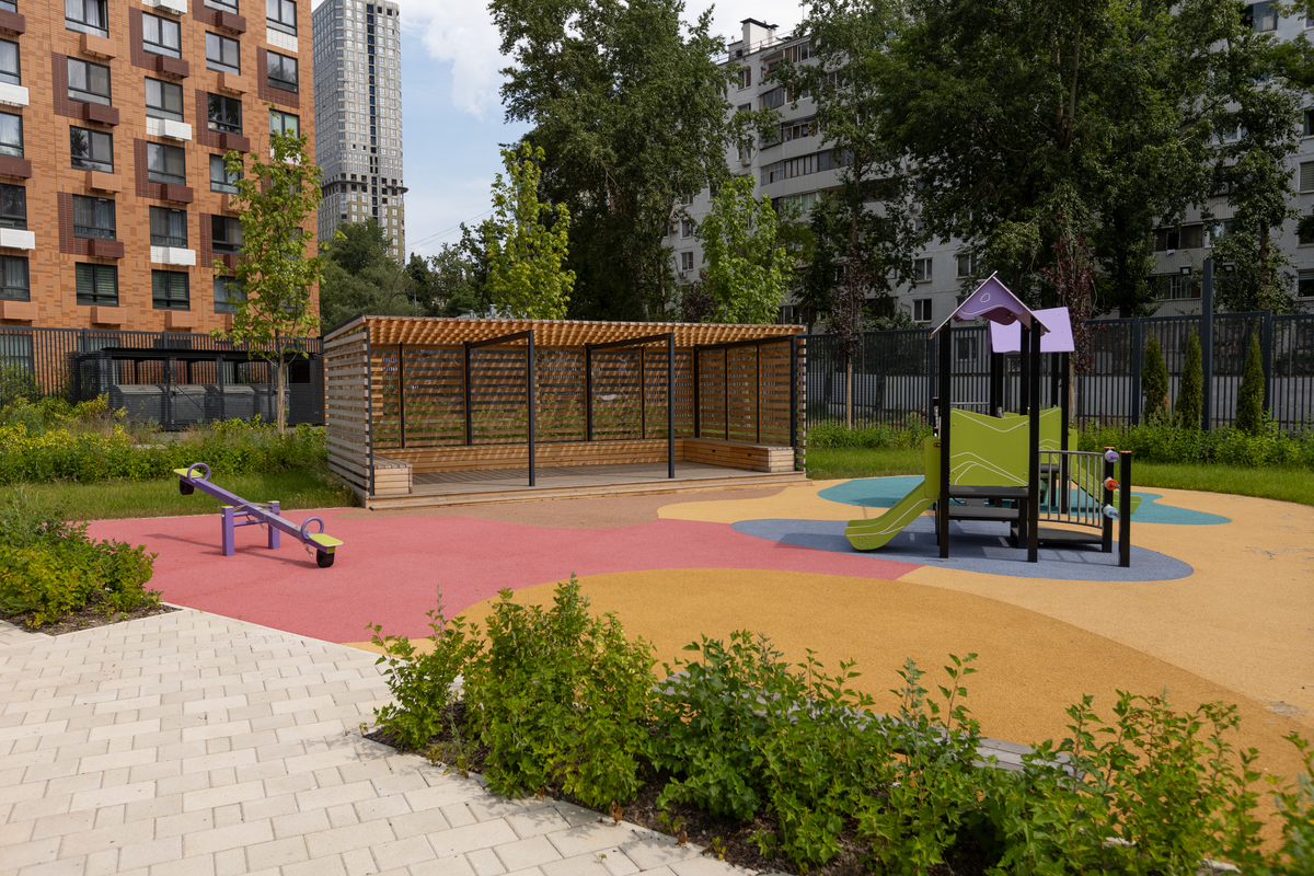 В проекте предусмотрена медленная зона для электросамокатов — с 7 утра до полуночи при въезде на территорию квартала скорость электросамокатов автоматически снижается до 15 км/ч.