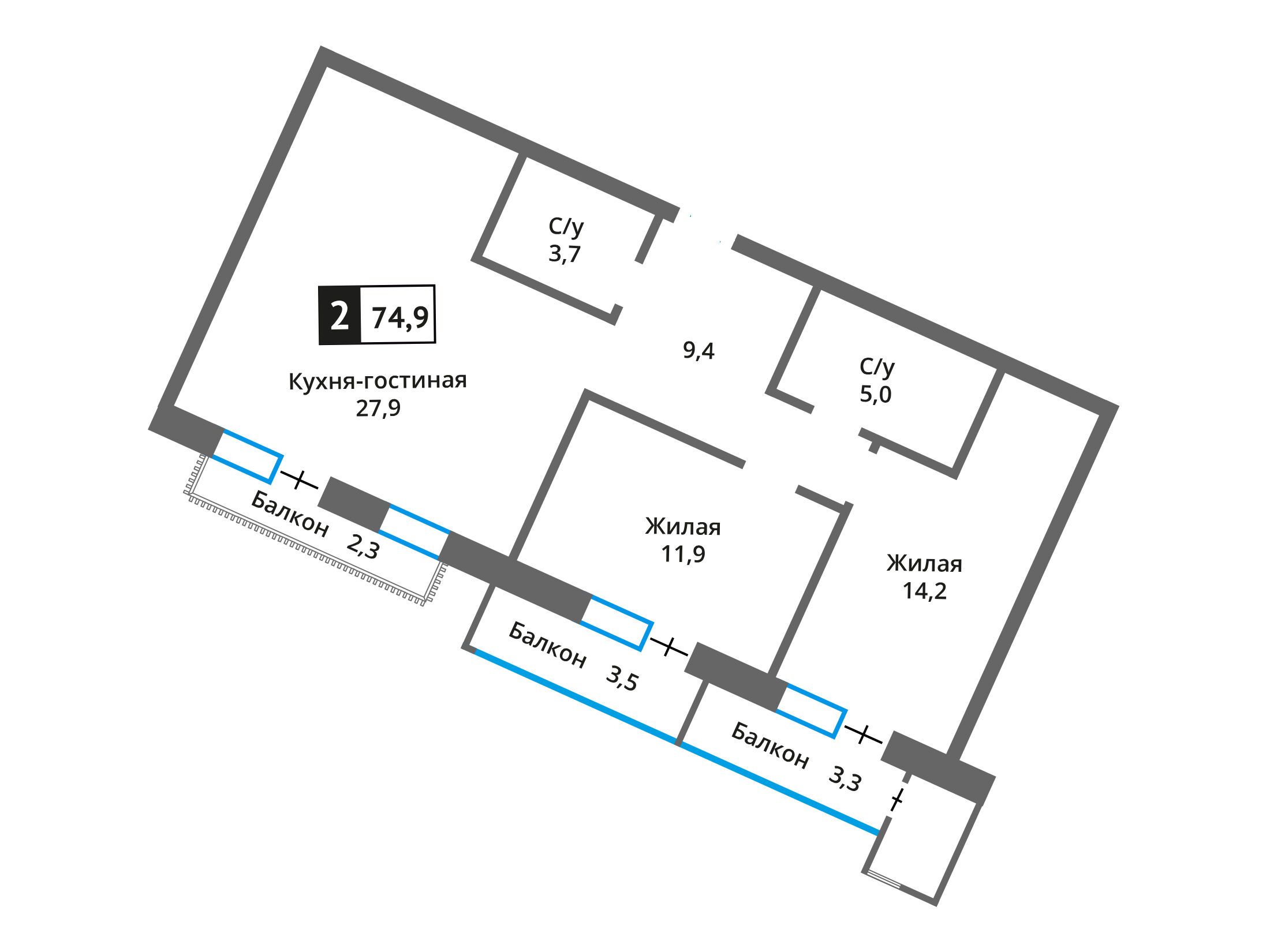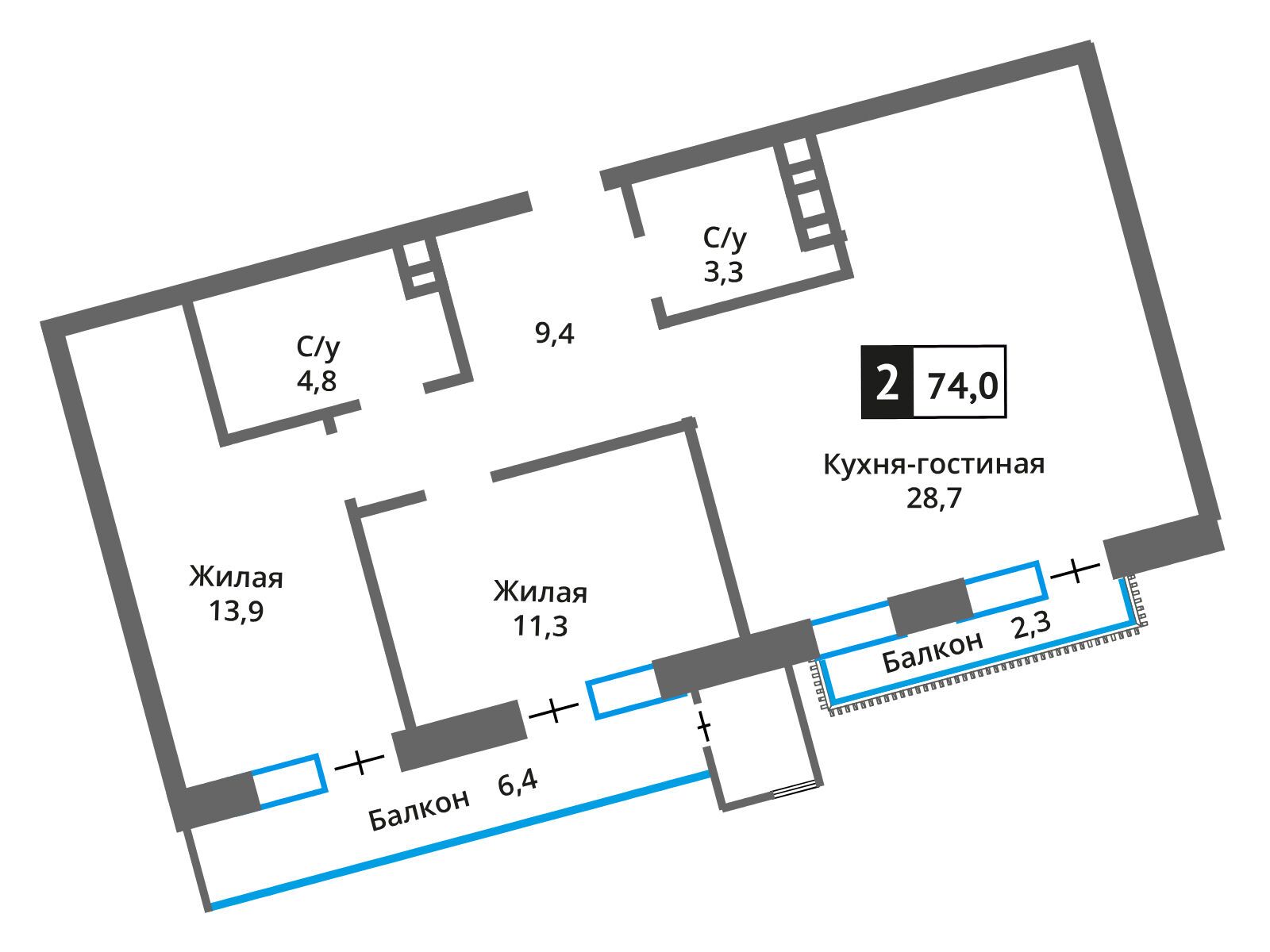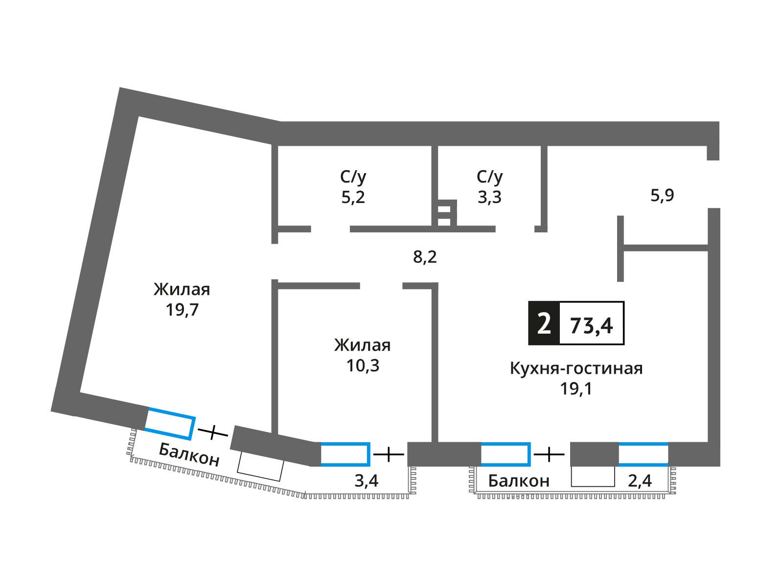73.4 - 250.9 м²