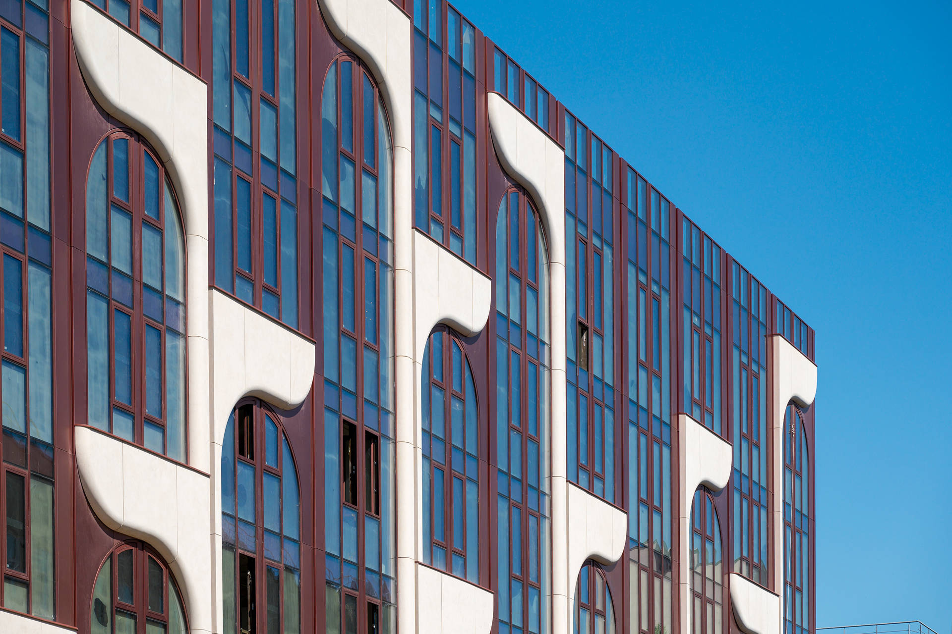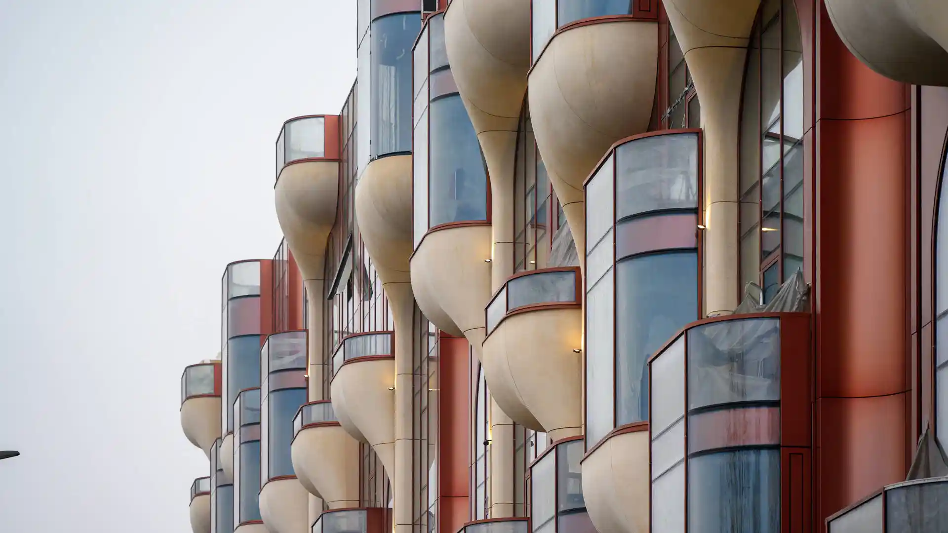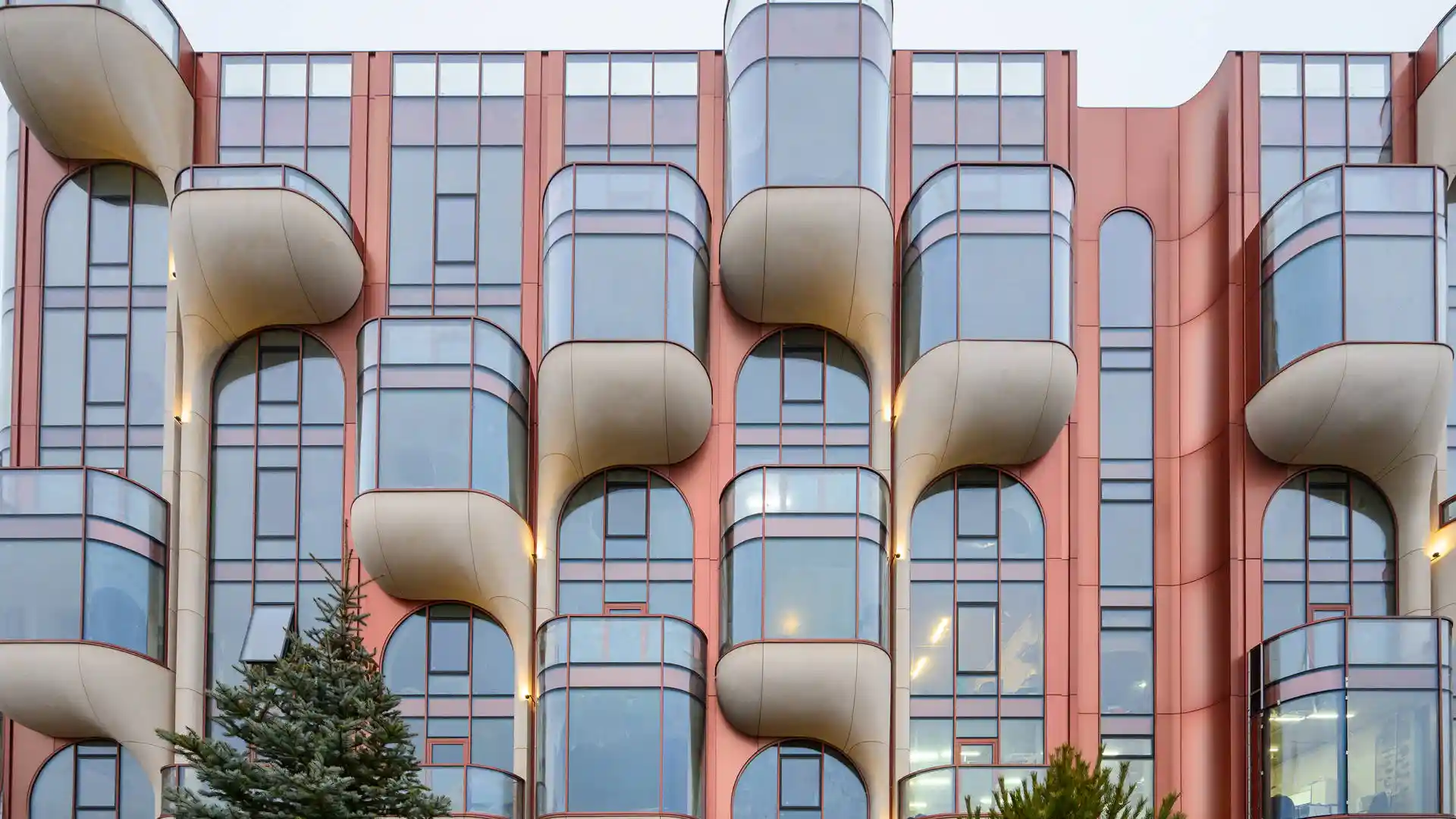 Современная архитектура комплекса выделяется своей уникальностью и стилем. Панорамные окна, охватывающие каждый этаж, предлагают захватывающие виды на окружающий пейзаж, придавая зданию воздушность и простор.