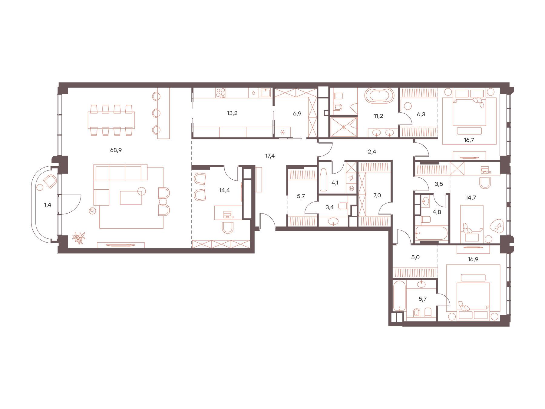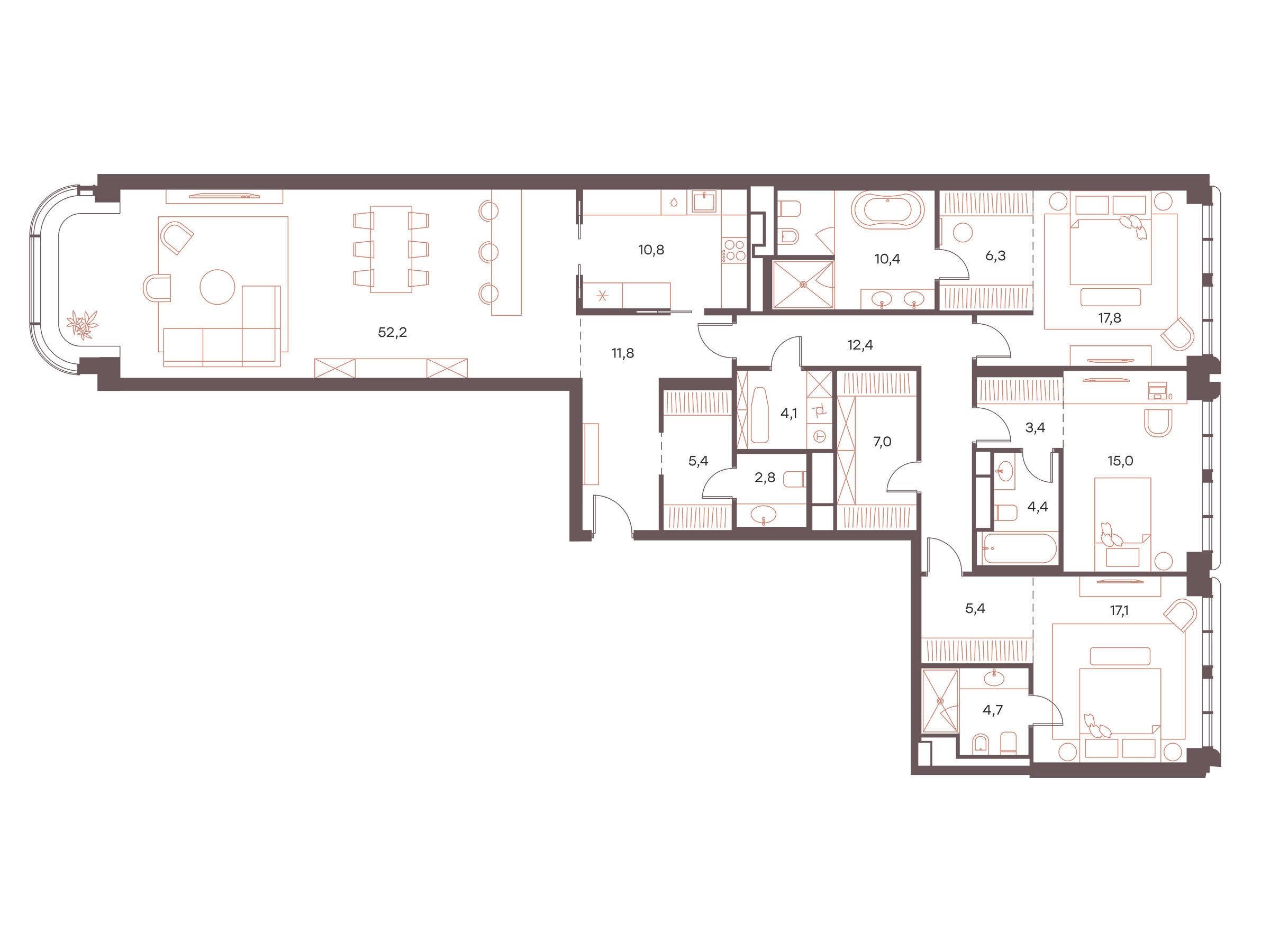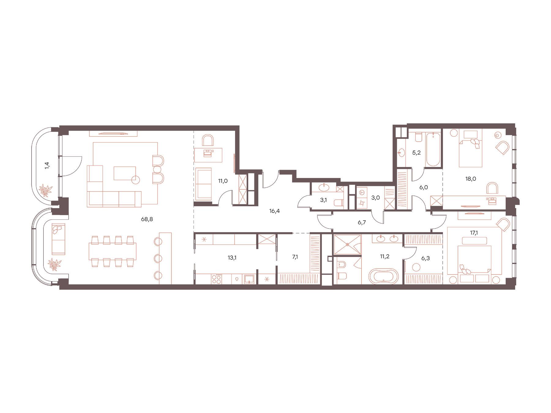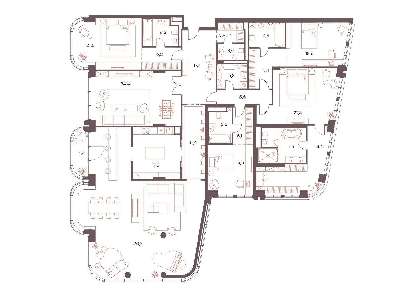 Всего 51 апартамент, представленных в диапазоне от 83 кв. м до 346 кв. м, предлагают жильцам разнообразные варианты для выбора. Каждый из них воплощает в себе исключительное сочетание функциональности и роскоши.