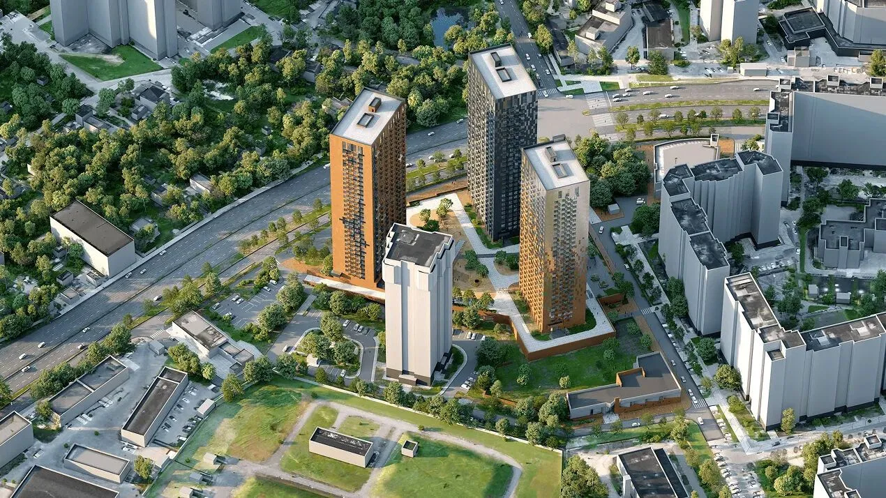 На первых этажах башен разместятся коммерческие помещения: магазины, кафе, аптека, отделения МФЦ и полиции, фитнес‑клуб. На кровле стилобата обустроен ландшафтный двор‑парк с пешеходными и велосипедными дорожками, видовыми площадками, игровыми комплексами для детей, местами для отдыха и кортами для командных игр. Территория комплекса закрыта, обеспечена круглосуточной охраной и видеонаблюдением.