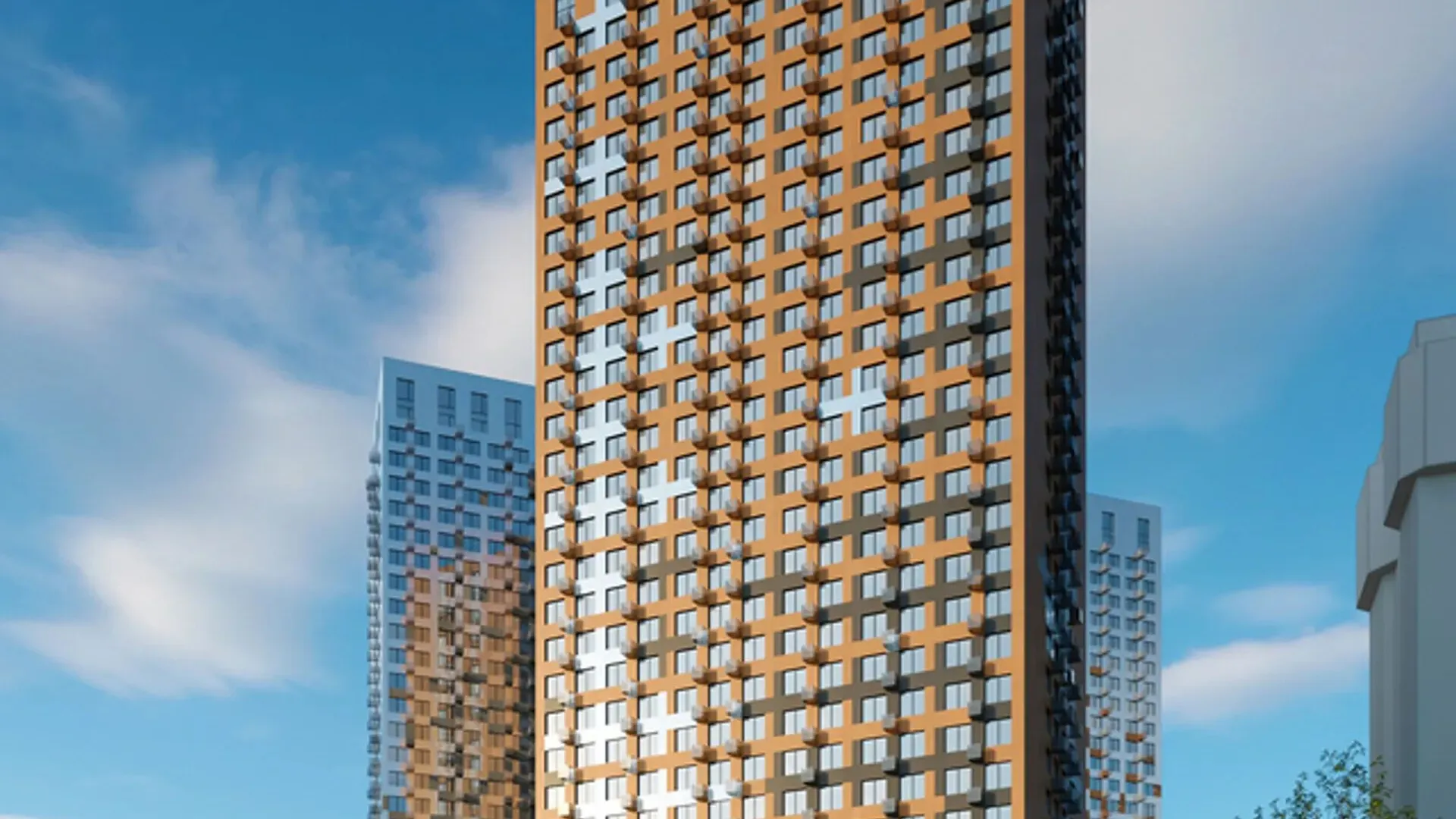 Архитектурное решение сочетает функциональность и эстетику: нижняя часть фасадов оформлена в терракотовых и графитовых тонах, верхние этажи украшены серебристыми оттенками и стеклянными плоскостями окон. Плоская рулонная кровля с внутренним водостоком подчёркивает современный облик зданий. Входные группы расположены на уровне земли, оформлены в стильном дизайне с «вторым светом» и потолками высотой 6 м, украшенными декоративными элементами. В каждой секции установлены два лифта производства Otis. Для удобства жителей предусмотрены помещения для хранения колясок, велосипедов и самокатов, а также лапомойки с душем и феном для животных.