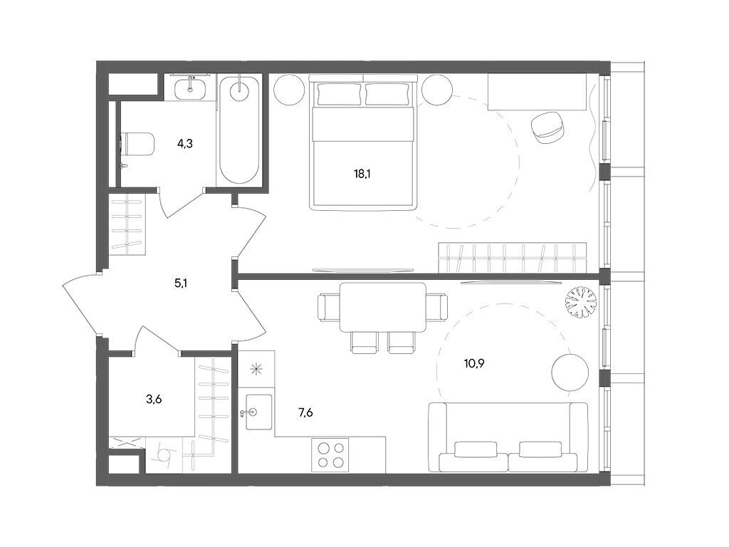 Площади квартир варьируются от 28 до 135 кв. м - от компактных студий до полноценных семейных квартир.