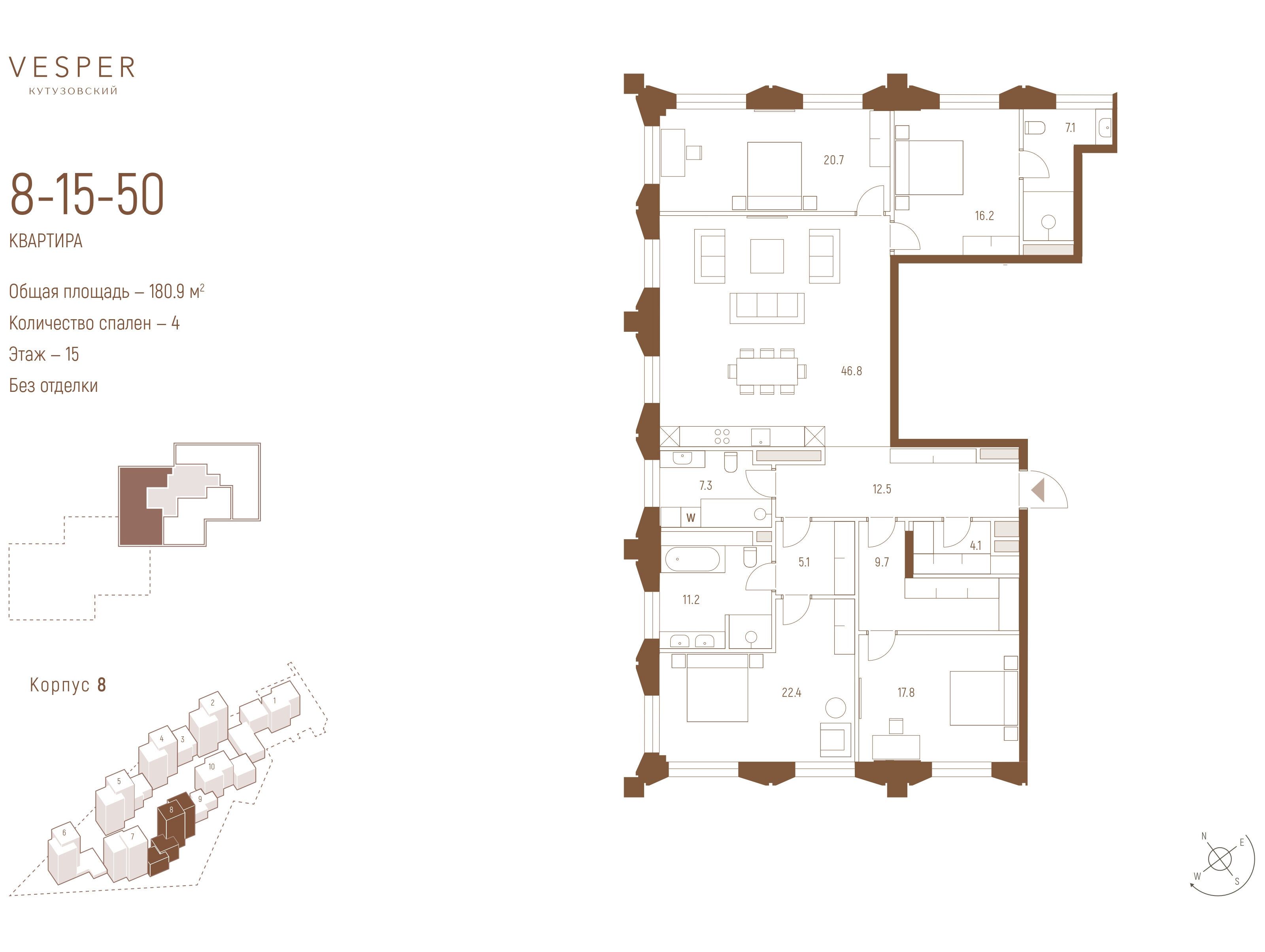 Комплекс относится к премиум-классу и состоит из одного монолитного корпуса, высота которого варьируется от 7 до 17 этажей. Внутри квартир предлагается варианты отделки без отделки, что позволяет жильцам самостоятельно выбирать стиль и оформление своего жилья.