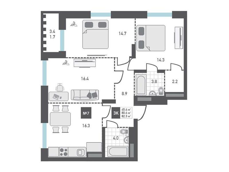 28.7 - 82.3 м²