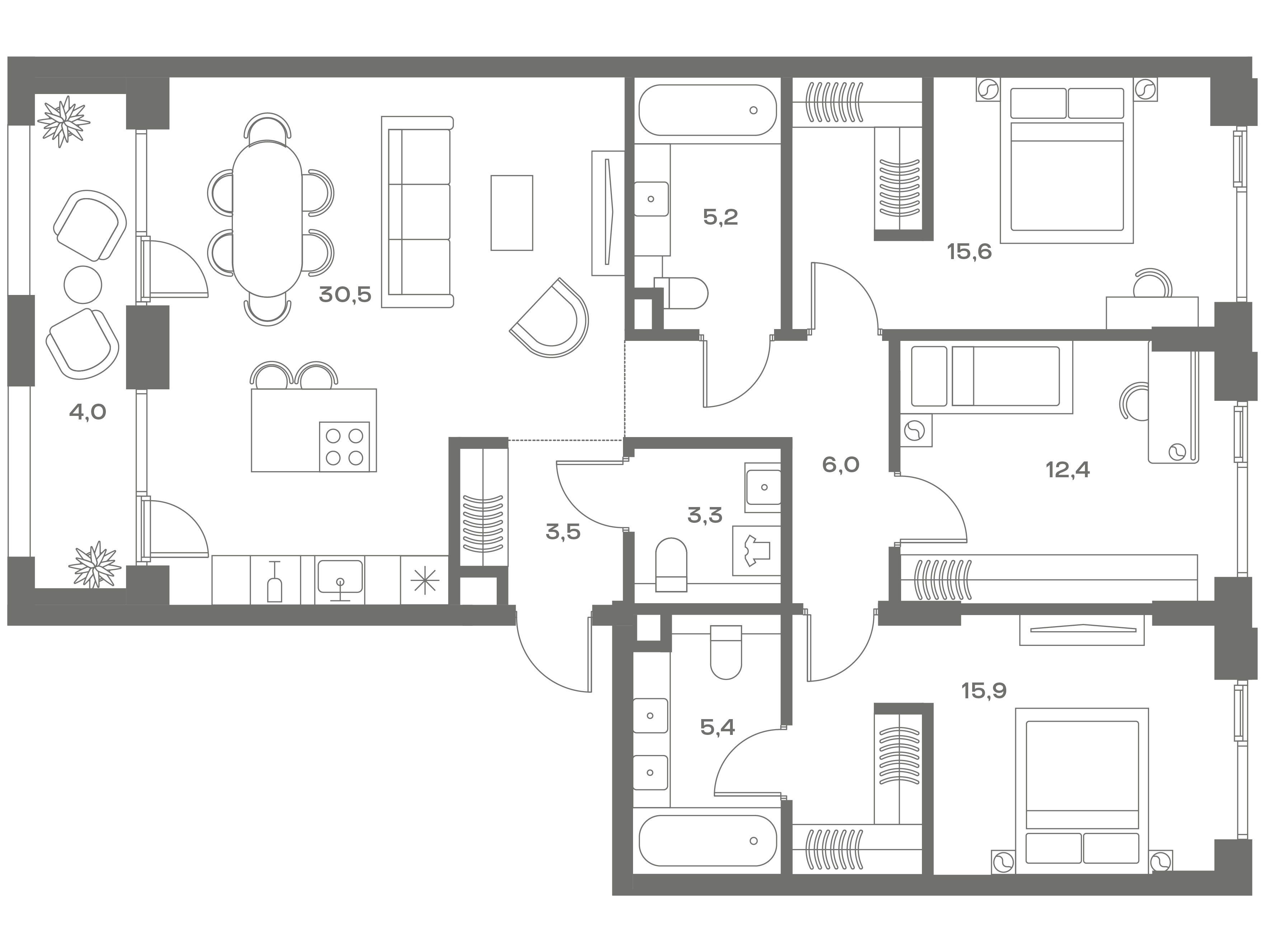 26.8 - 159.4 м²