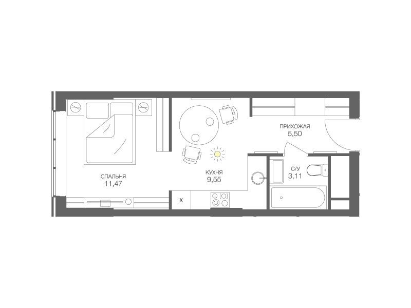 ЖК «HEADLINER» предлагает разнообразие планировок от студий размером от 29.5 квадратных метров до просторных четырехкомнатных лотов площадью до 120 квадратных метров. Каждая квартира обладает панорамными окнами и потолками высотой 3.1 метра, создавая ощущение простора и света.
