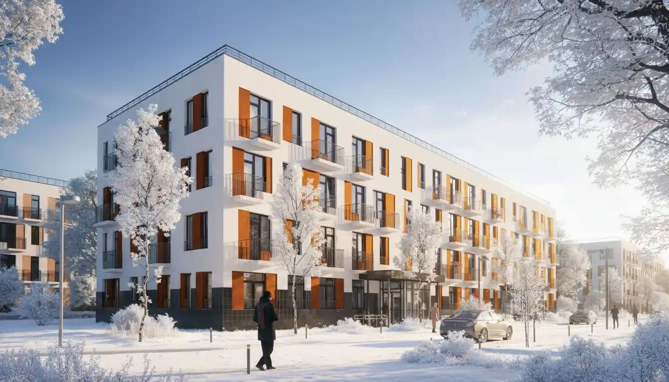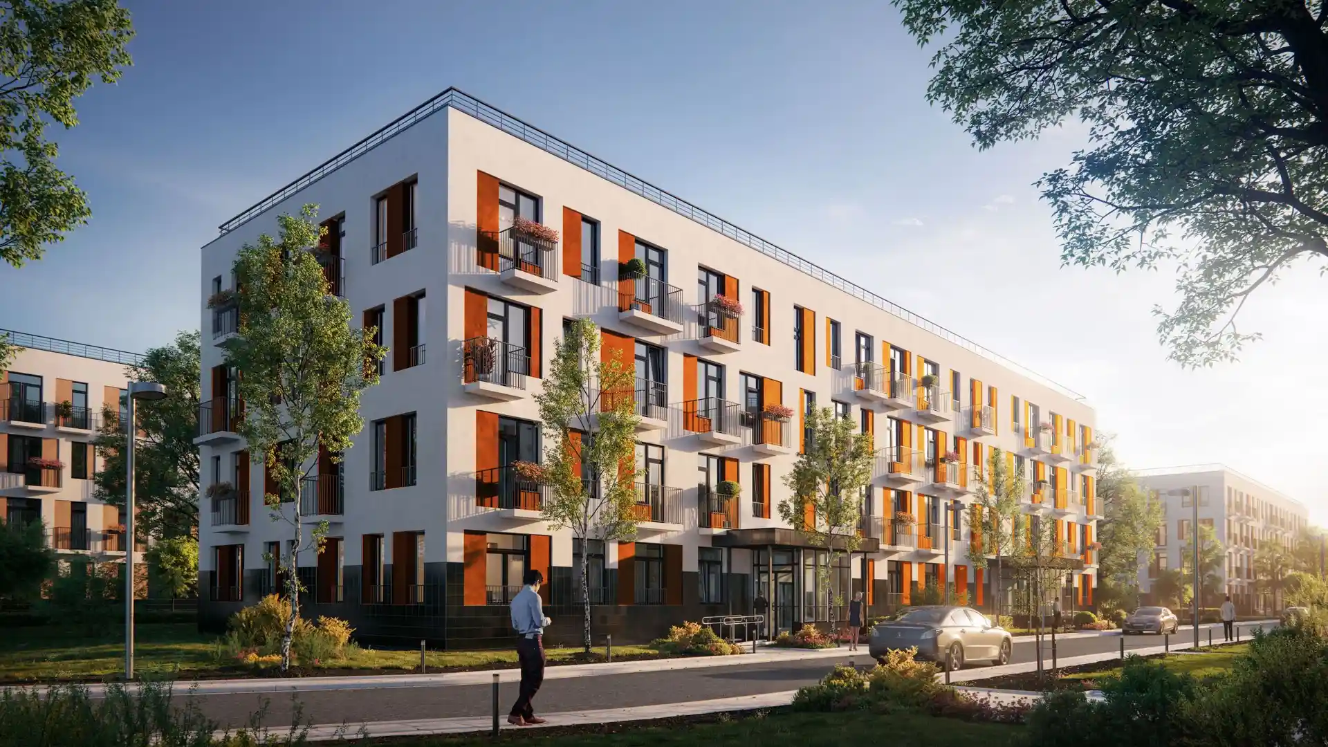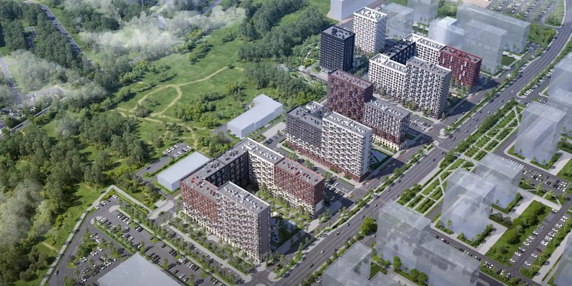 В составе нового жилого комплекса будут монолитные дома высотой 11-12 этажей. Корпуса расположатся полукругом, подобно лучам, исходящим из одного центра. Такое решение позволяет эффективно использовать площадь и оставить достаточное расстояние между домами, чтобы в каждом дворе было просторно и солнечно.
