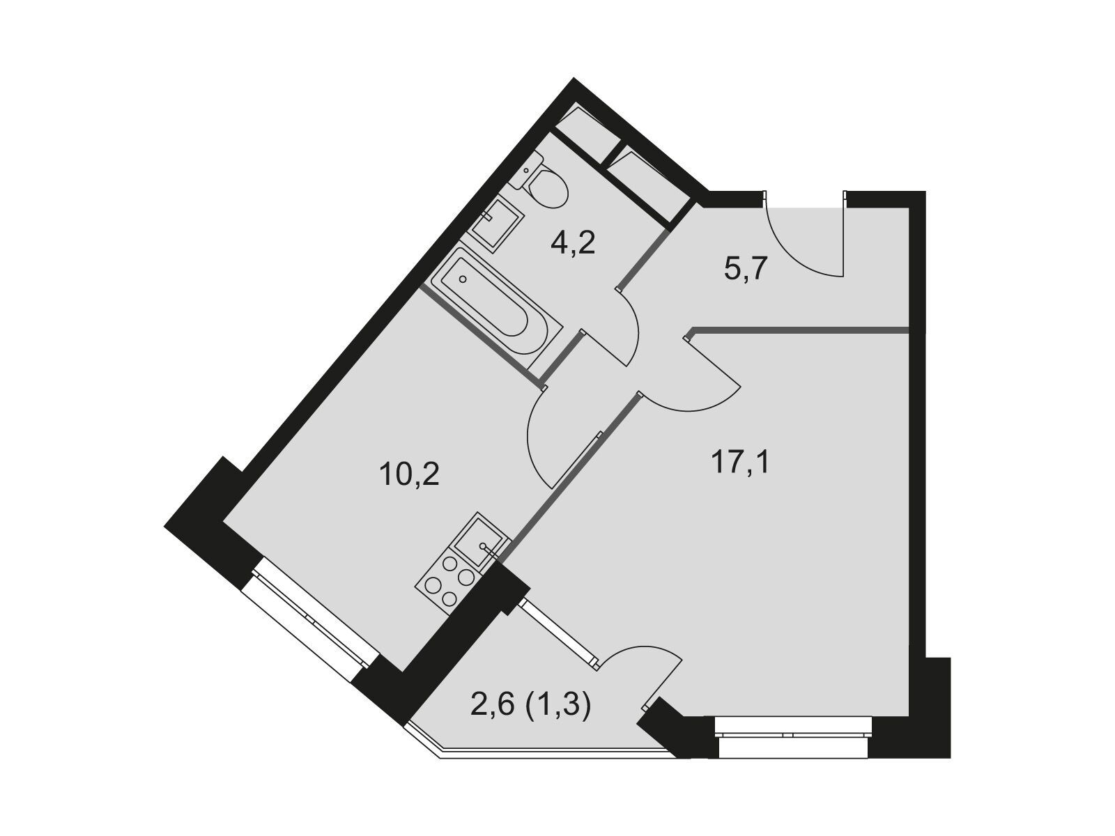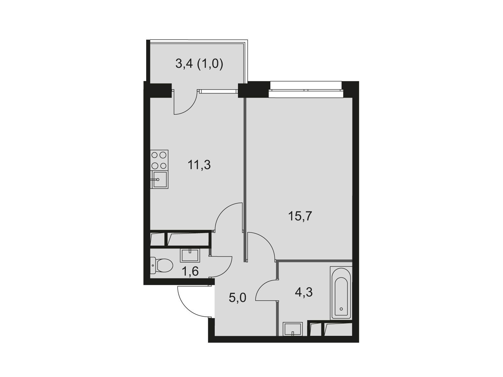 38.4 - 38.9 м²