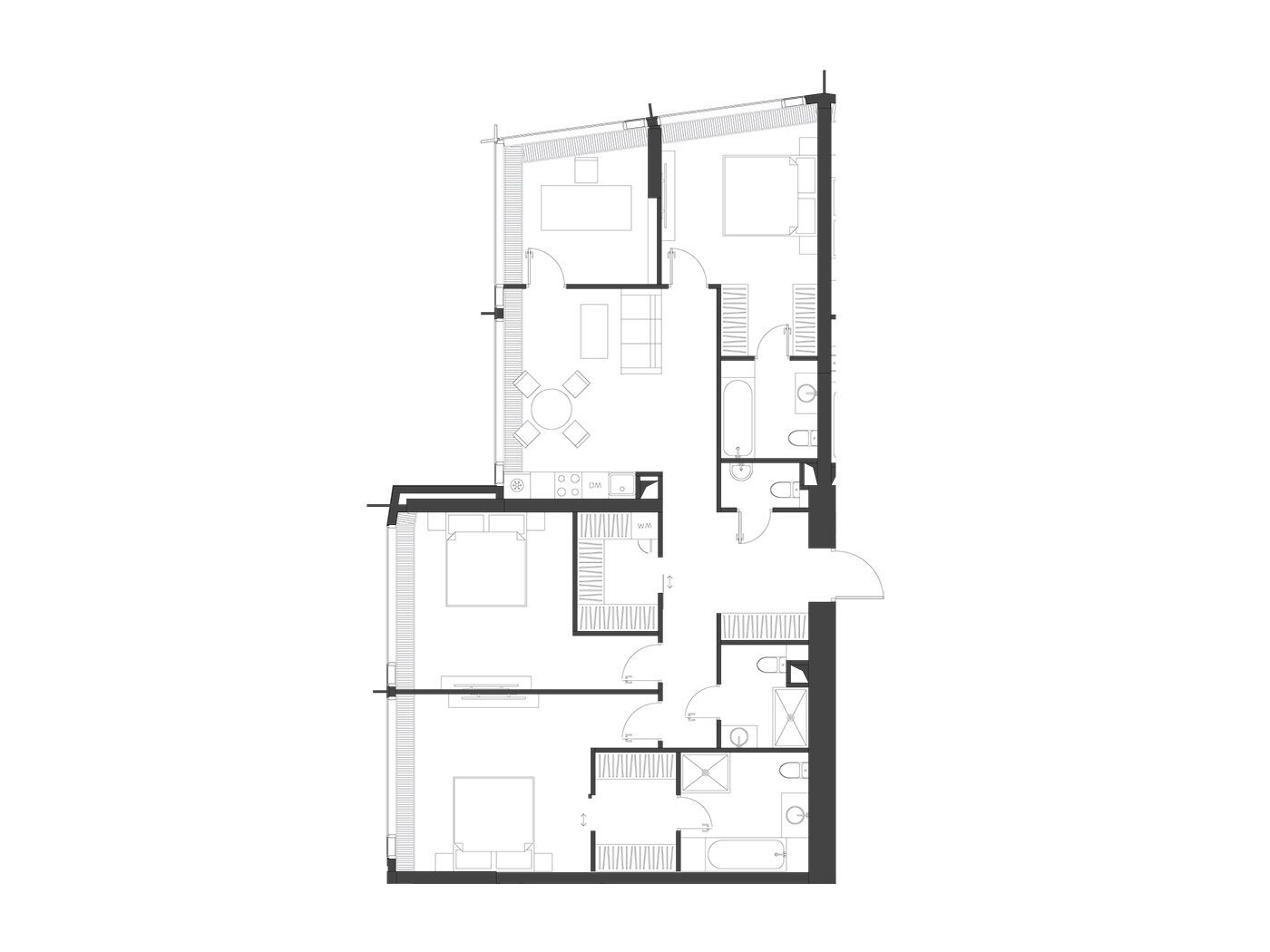 В ЖК «Дом Дау» представлены квартиры различных планировок, начиная от однокомнатных до пятикомнатных. Каждая квартира предлагается без отделки, что позволяет новым владельцам воплотить свои дизайнерские идеи и создать уникальное пространство, отвечающее их вкусам и предпочтениям. Высота потолков в квартирах составляет от 3 до 3,8 метров, что создает ощущение простора и свободы.