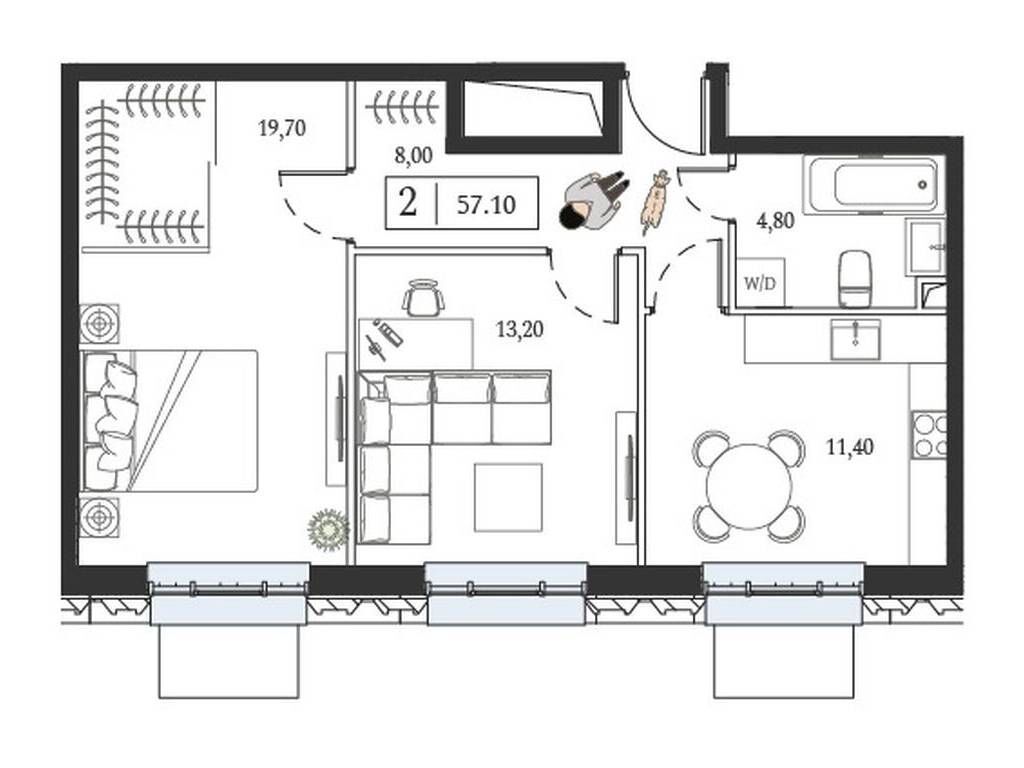 57.1 - 162.2 м²