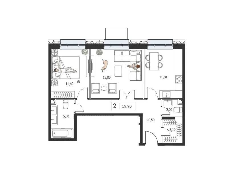 Здесь представлены различные варианты планировки квартир: одно-, двух-, трех-, четырех- и пятикомнатные. Кроме того, в комплексе есть роскошные двухуровневые пентхаусы, оснащенные большими террасами, откуда открывается захватывающий вид на окружающую местность.