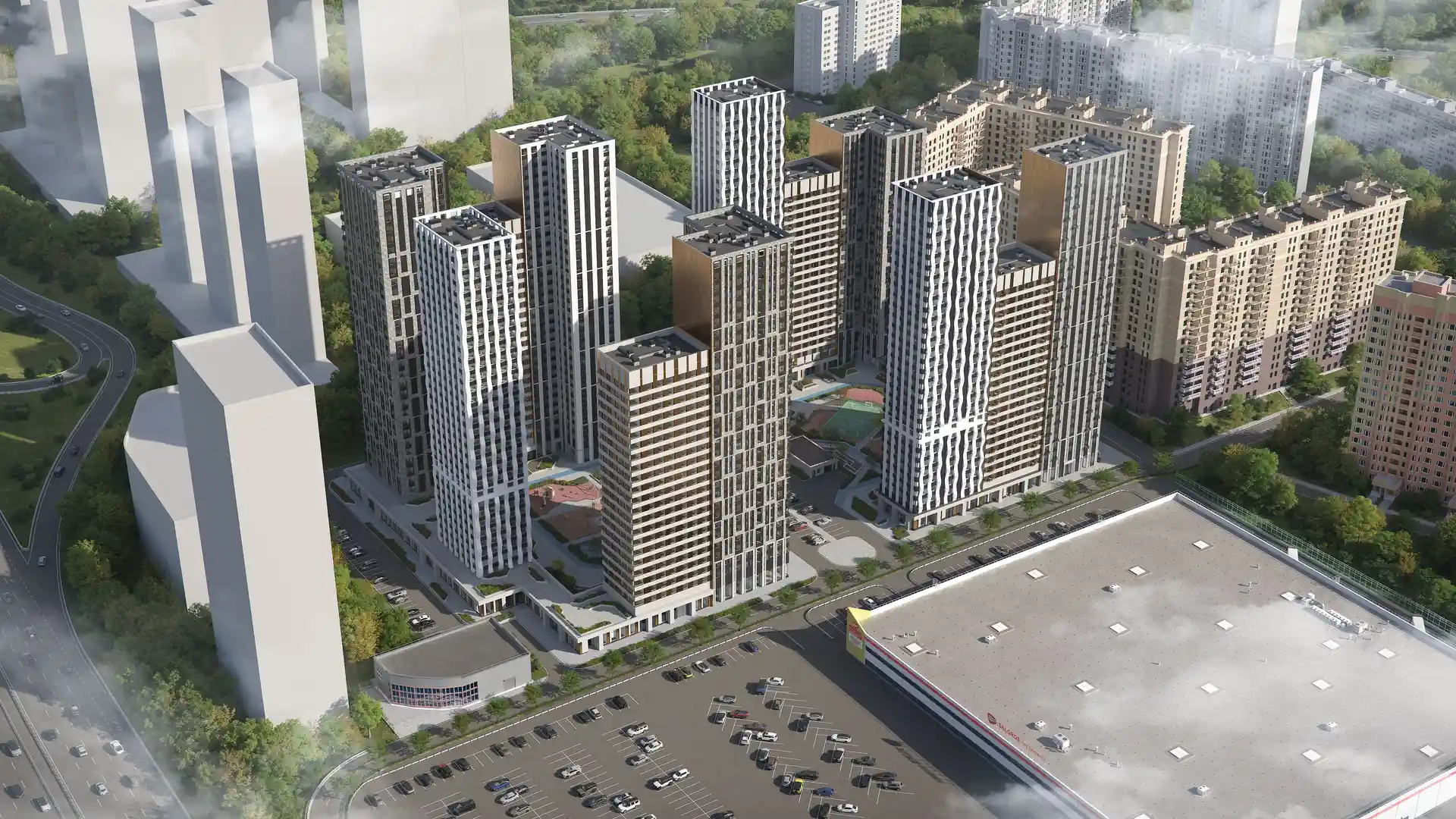 Среди преимуществ комплекса стоит отметить его расположение в районе с развитой социальной и торговой инфраструктурой и высокой транспортной доступностью. У жителей новостройки в пешей доступности будут места для отдыха, развлечений и шоппинга, образовательные учреждения и спортивные площадки, а дорога до Москвы будет занимать минимальное время на метро или автомобиле.