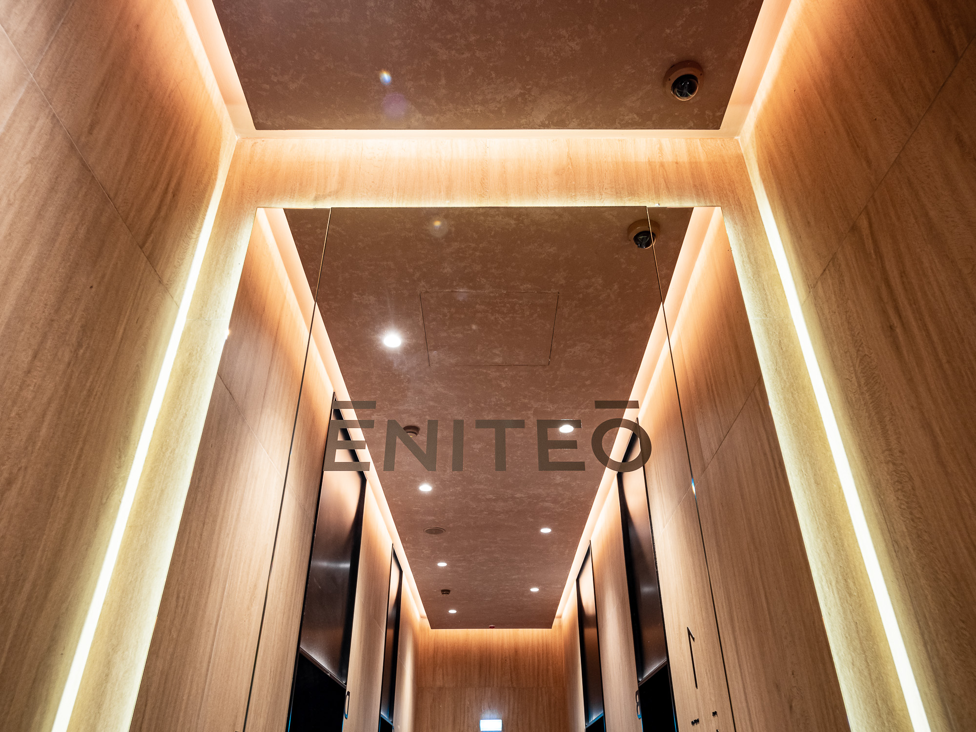Внутри комплекса ЖК «Eniteo» ждут своих жителей стильные лобби с дизайнерской отделкой и зоной отдыха. Дополнительные удобства включают кладовые помещения и колясочные, а также мойку для лап домашних питомцев.