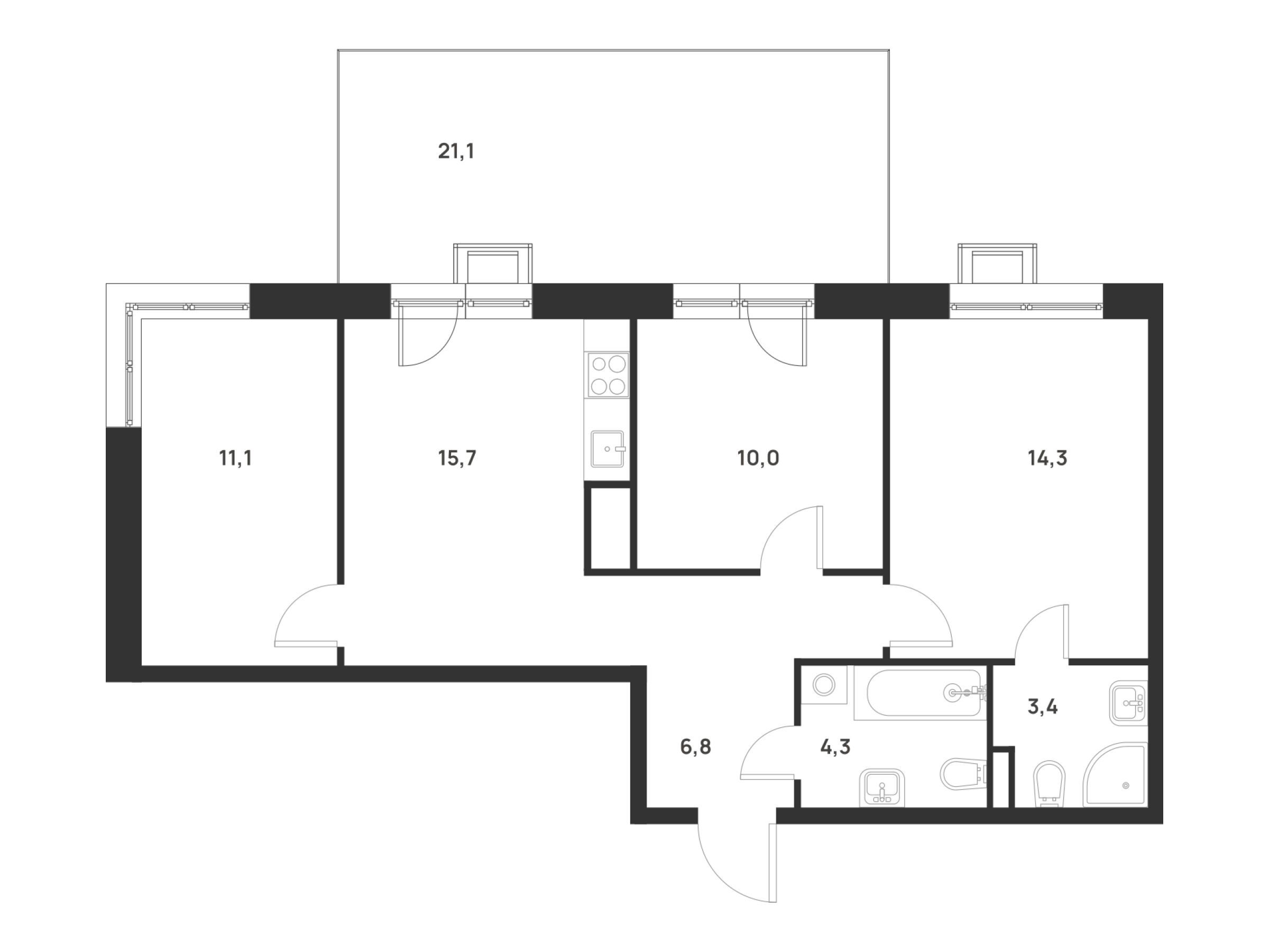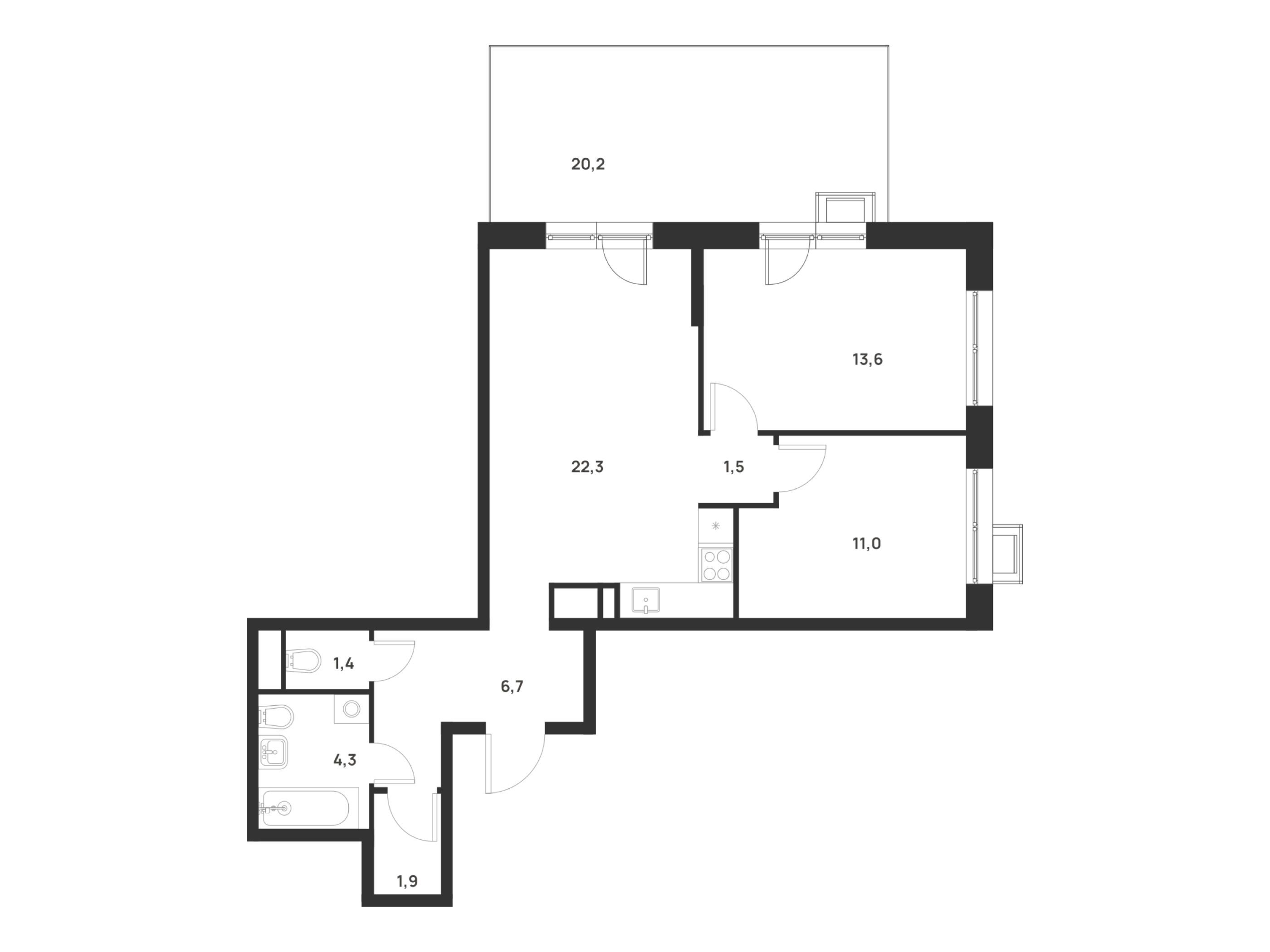 20.6 - 82.2 м²