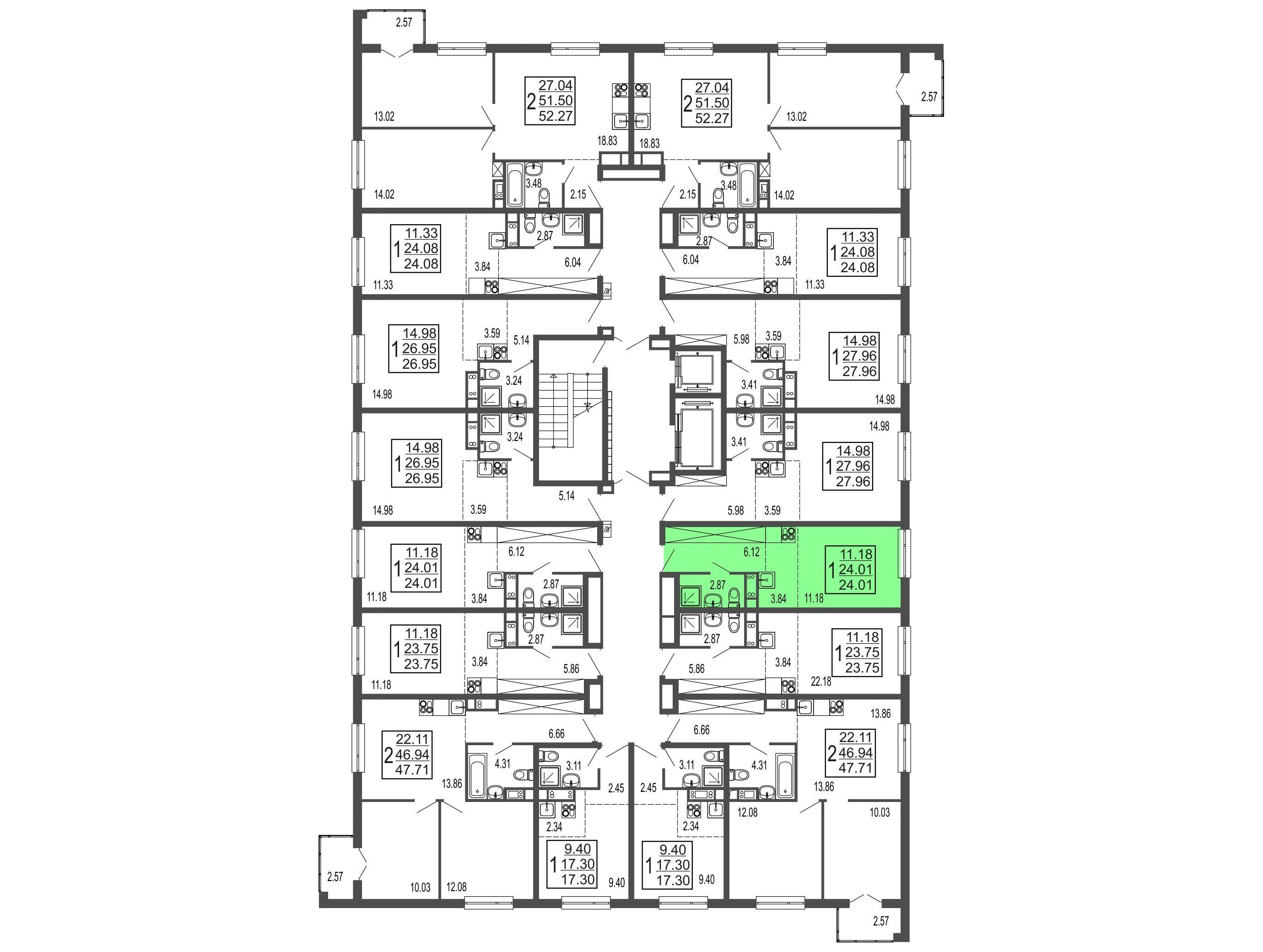 23.76 - 27.61 м²