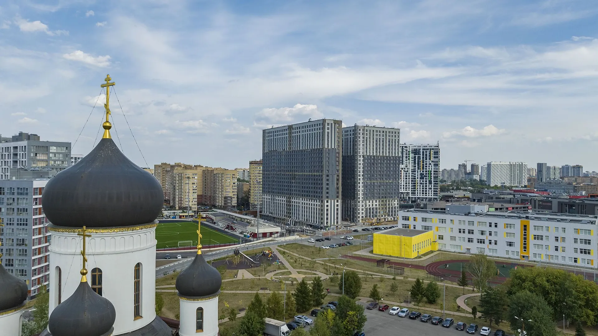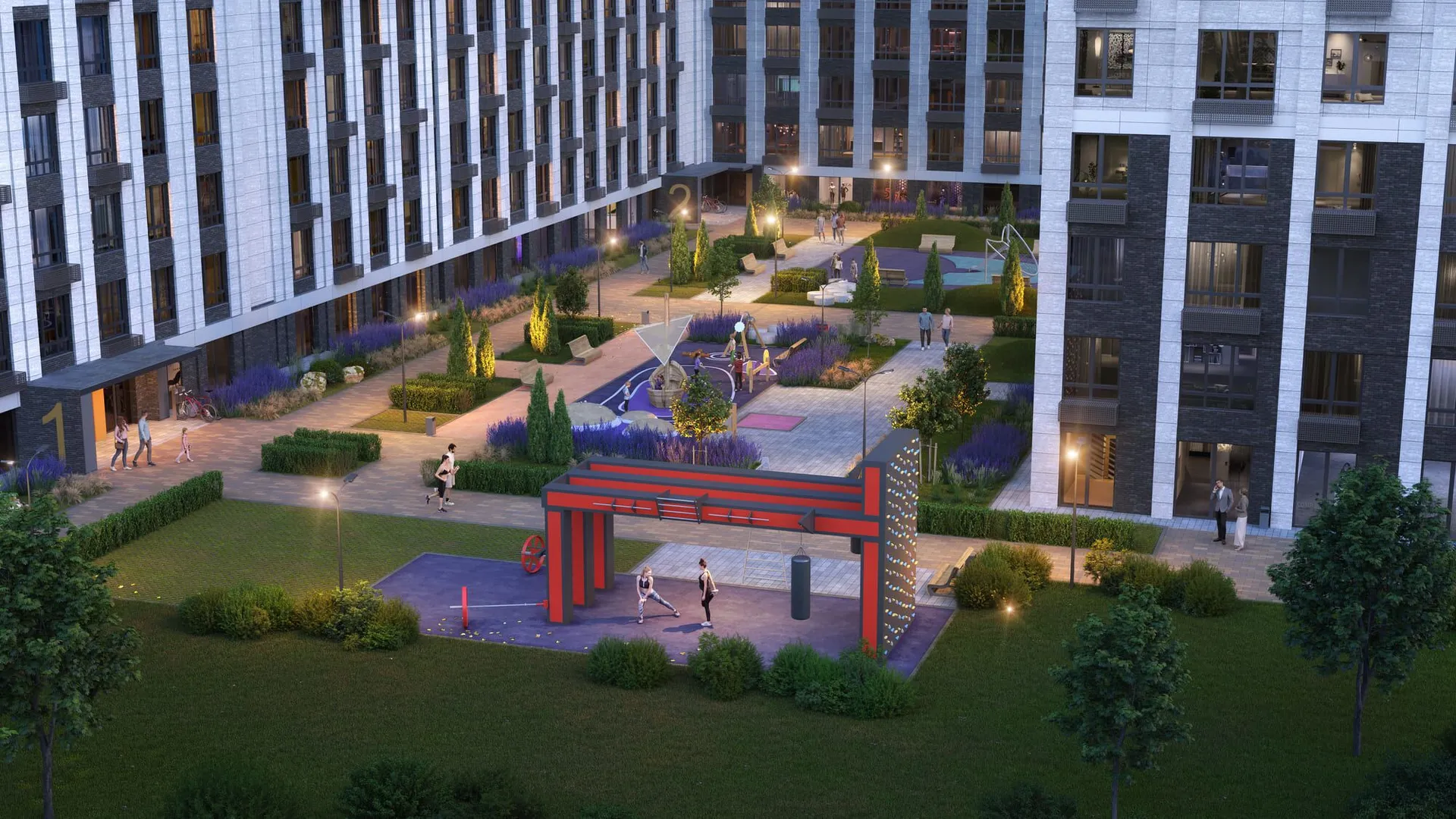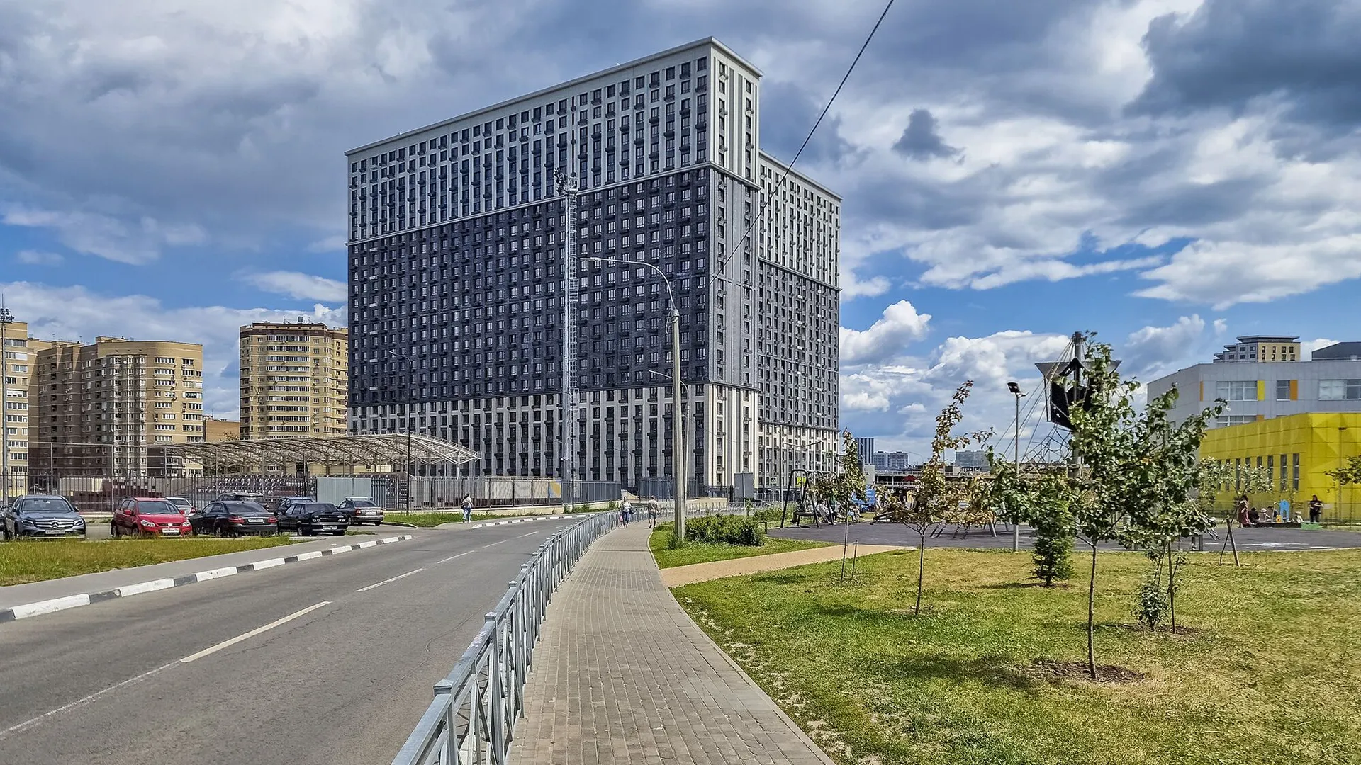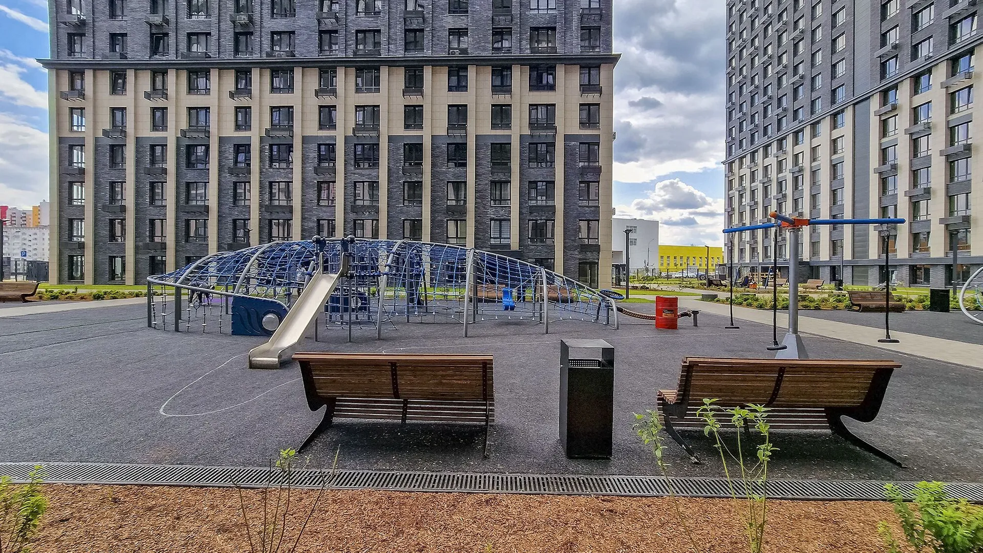 Отличное расположение комплекса, прекрасные виды, вокруг комплекса очень много насаждений, во дворе комплекса очень много детских площадок. Есть подземный паркинг, с возможностью покупки мест для машины. Есть куда сходить с детьми на выходных