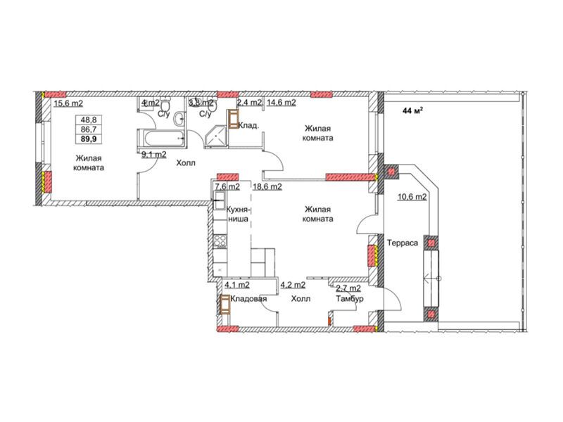 82.5 - 108.5 м²