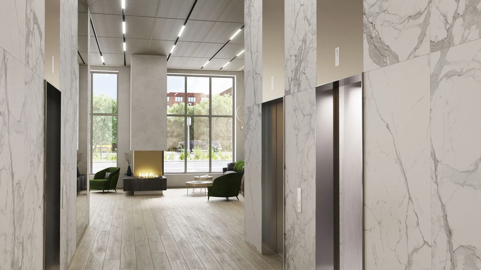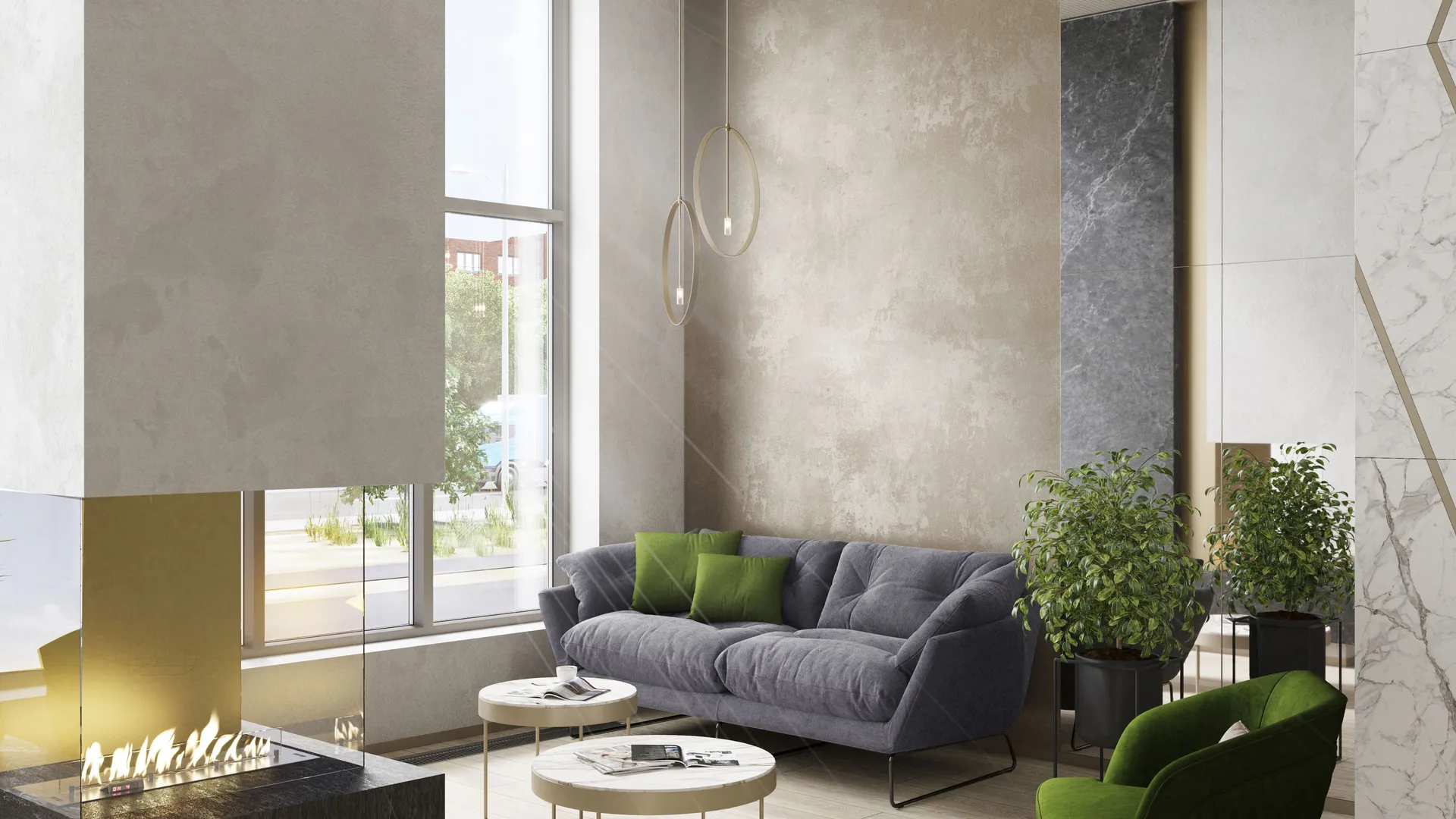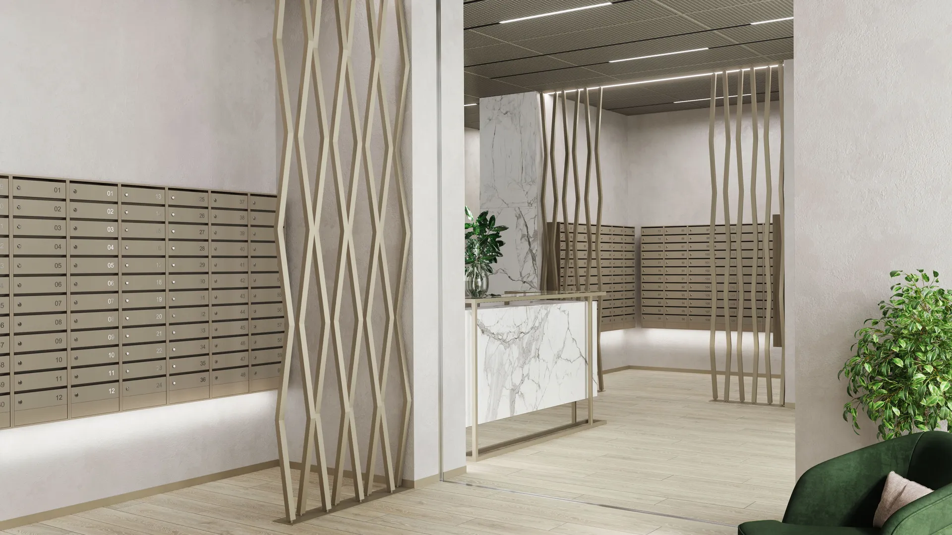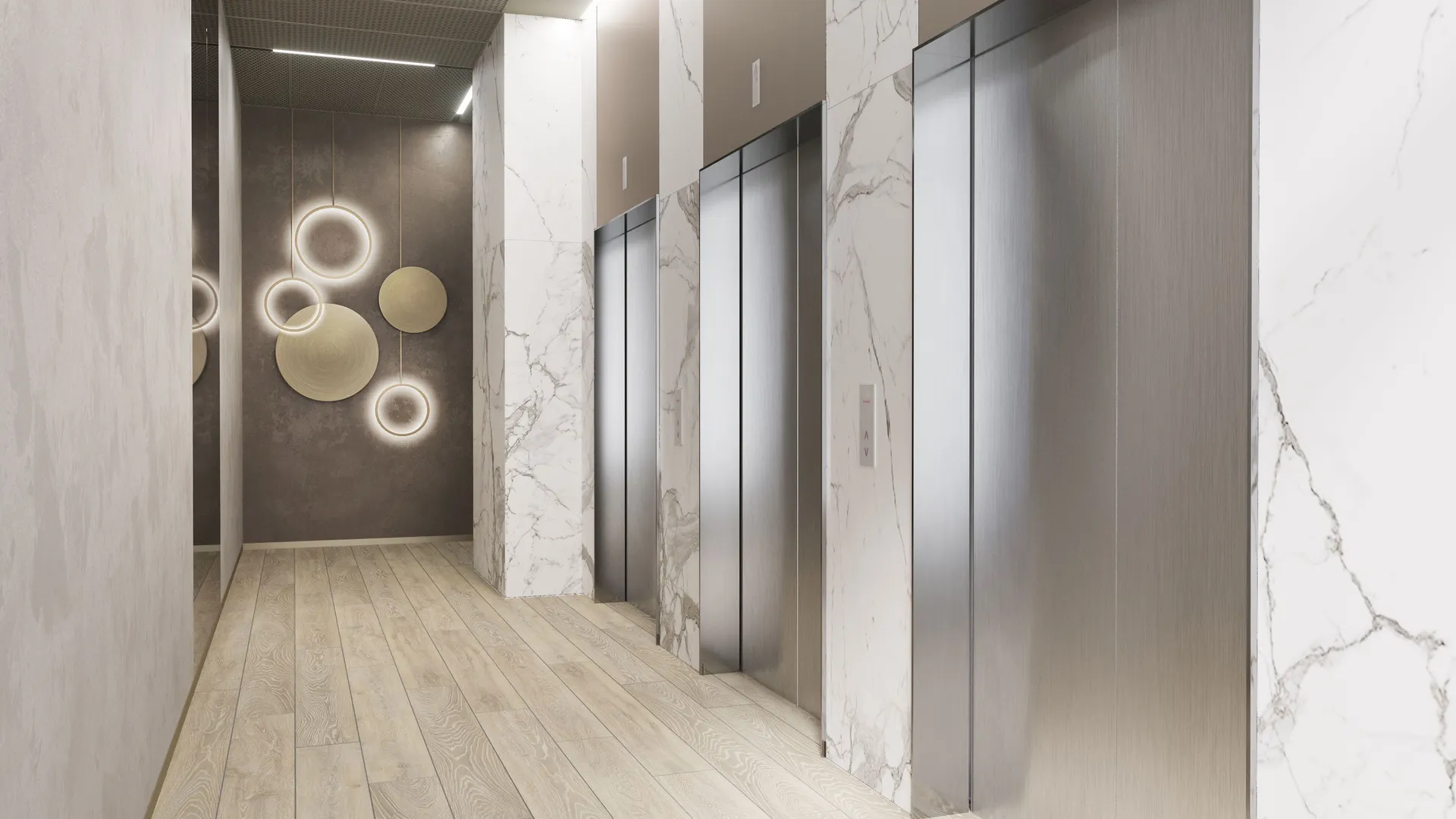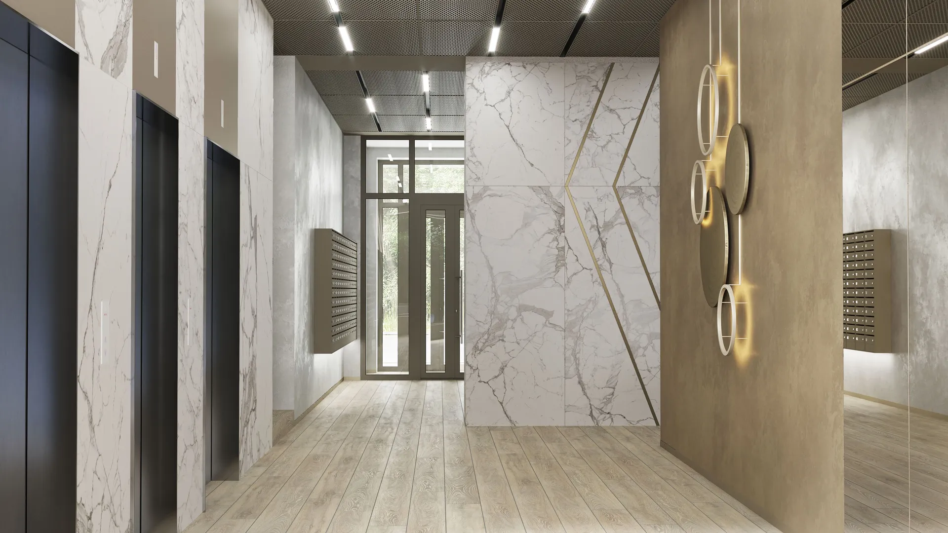 В удобных домах созданы красивые и функциональные лобби. Они выполнены в спокойных благородных тонах, в них удобные сквозные подъезды, есть колясочные и гостевые санузлы. Высота потолков в лобби достигает 4,5 метра. На комфортном подземном паркинге предусмотрена автомойка.