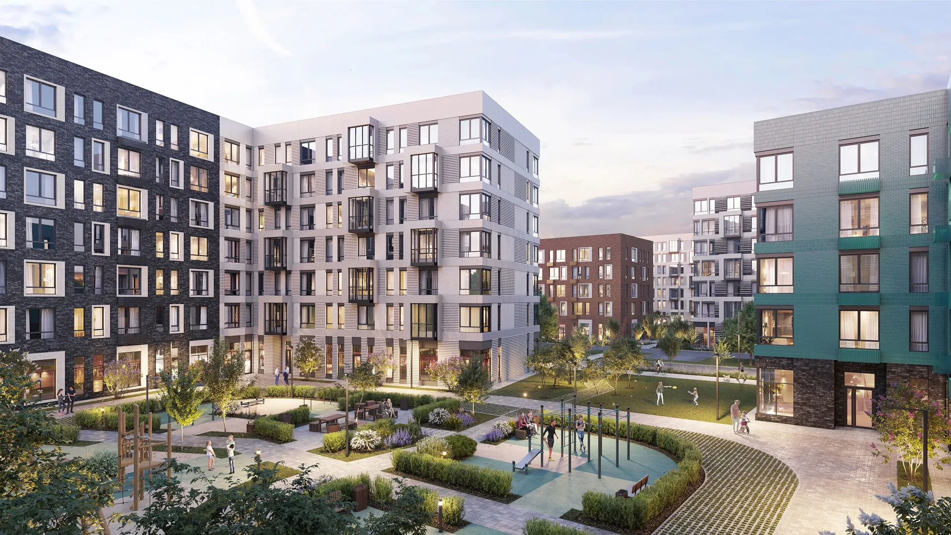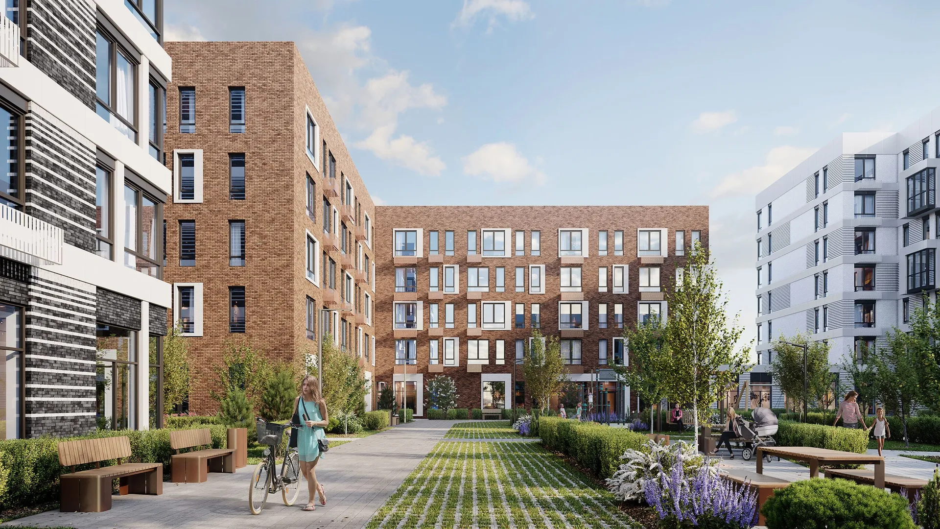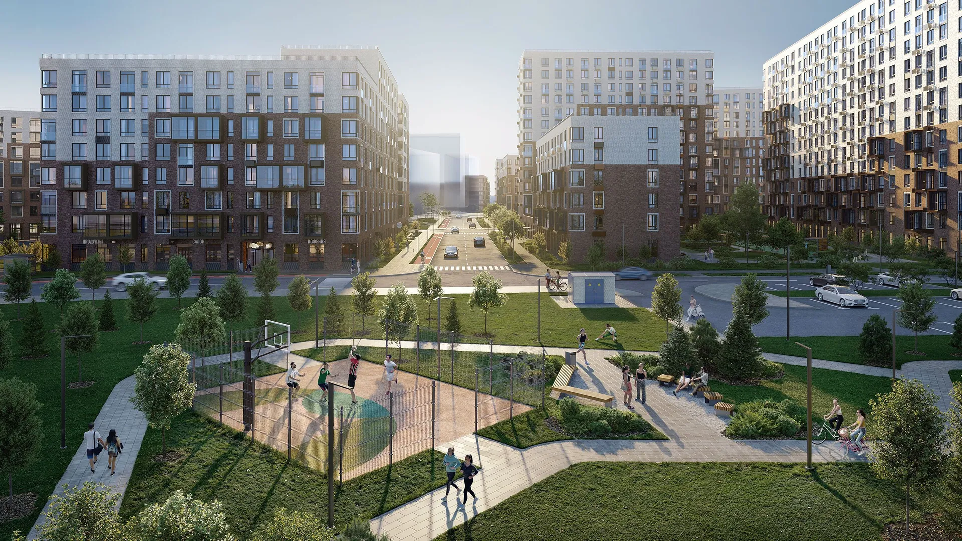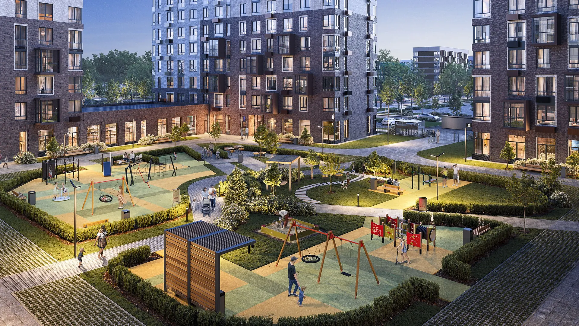 Корпуса образуют урбан-блоки, внутри которых будут благоустроенные дворы с детскими и спортивными площадками, удобными столиками для настольных игр, лавочками и навесами. Во всех зонах для активного отдыха предусмотрено безопасное покрытие из резиновой крошки.